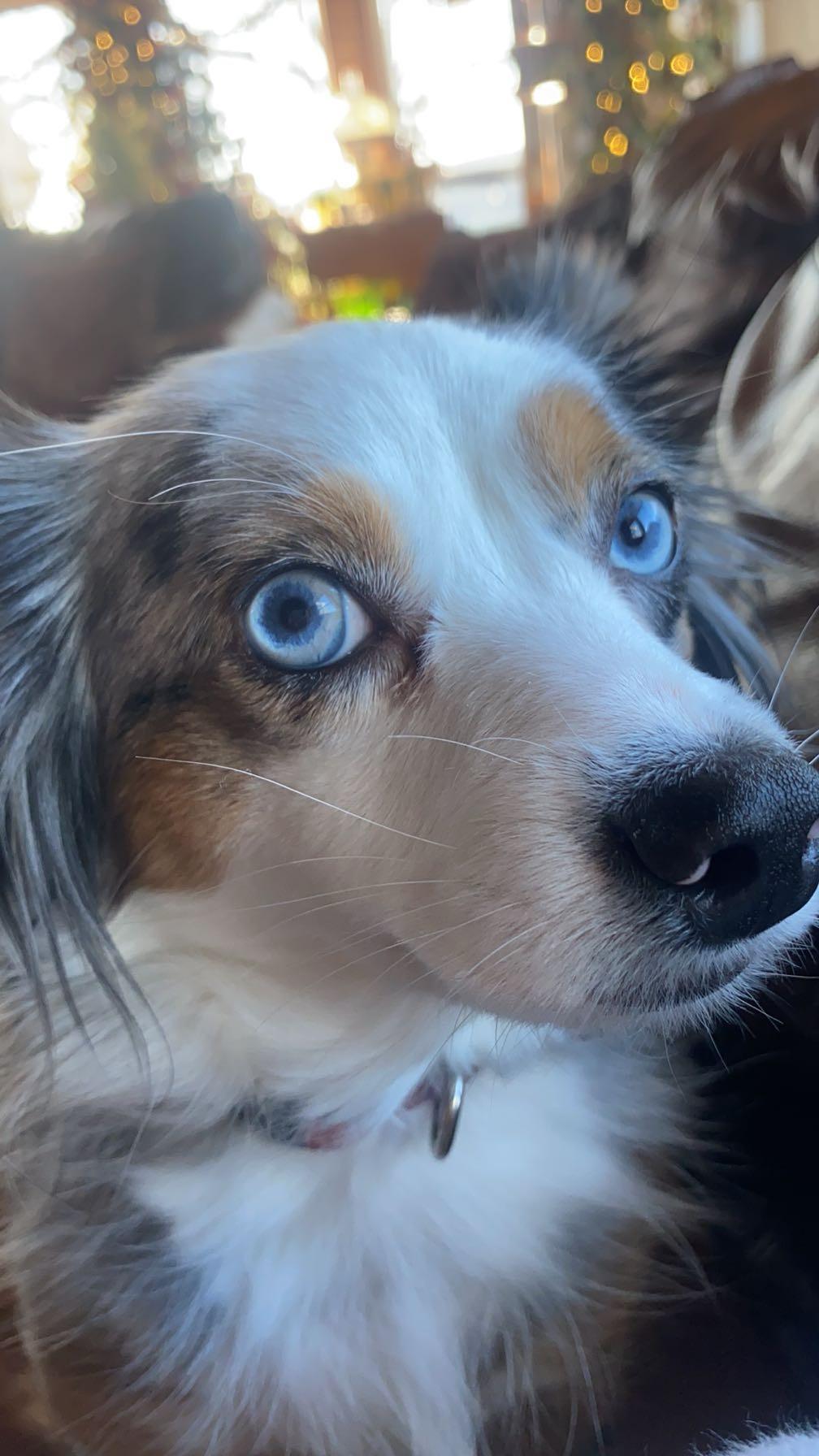 Dolly is extremely lovable n playful but only to a select few. She doesn’t like new people or change. She loves to jump on the trampoline with her human sisters, attacks the vacuum cleaners, leaf blower, weedeater, n very protective of the family. She honestly can be a pain in the butt, but with those big beautiful blue eyes and personality she is so loved.