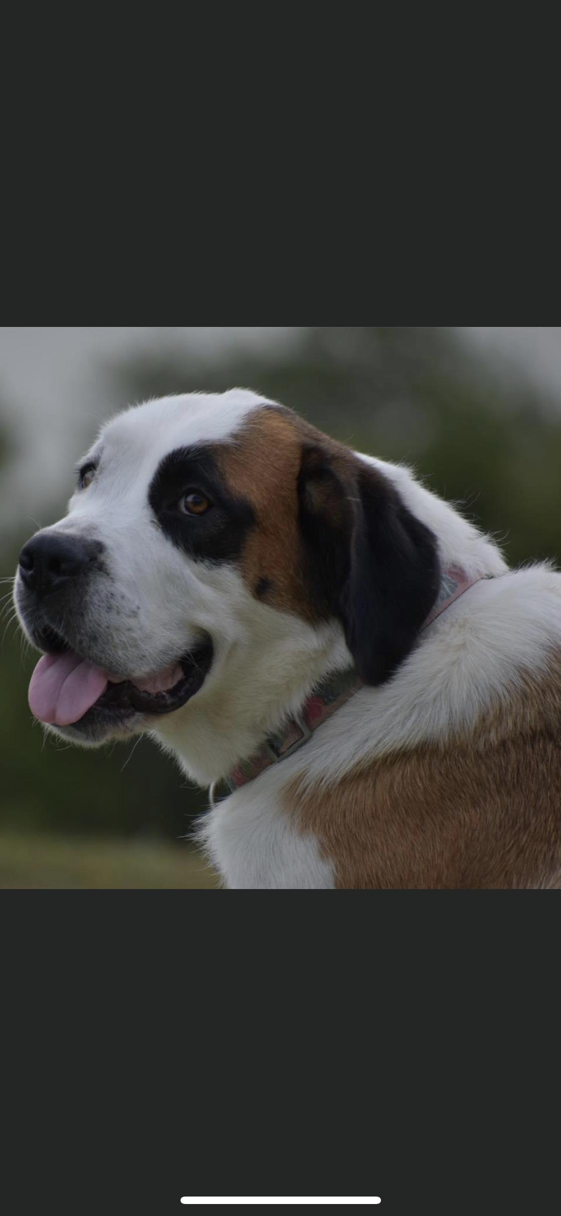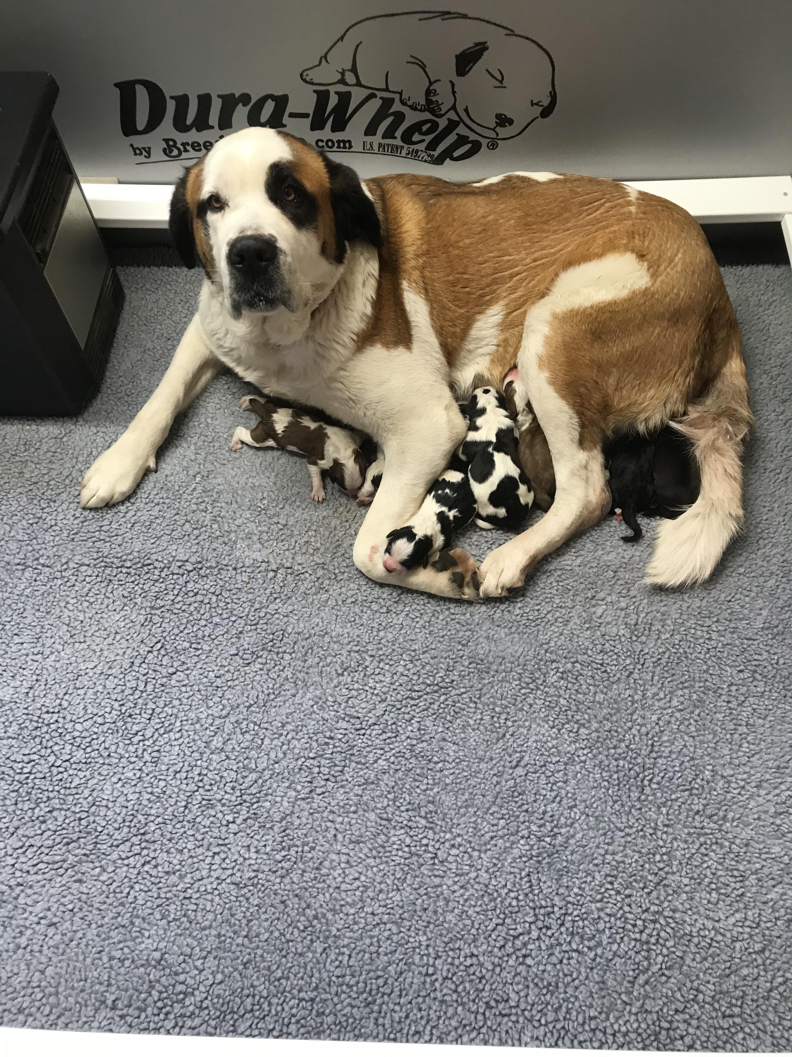 Mia is a female Saint Bernard about 7 years old. Carefully selected as a great representative of her breed, Rachel decided to make her part of their program. Rachel has passed Good Dog’s screening process, which involved a review of their breeding practices, environment, and the mental and physical health of their dogs.