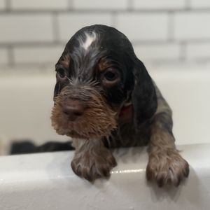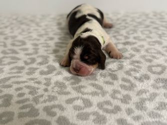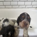 Our puppies are tri-roan. Colors will vary depending on the parent dogs.