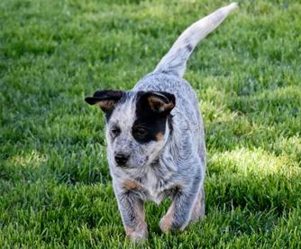 Our puppies include blue speckled and blue. Colors will vary depending on the parent dogs.