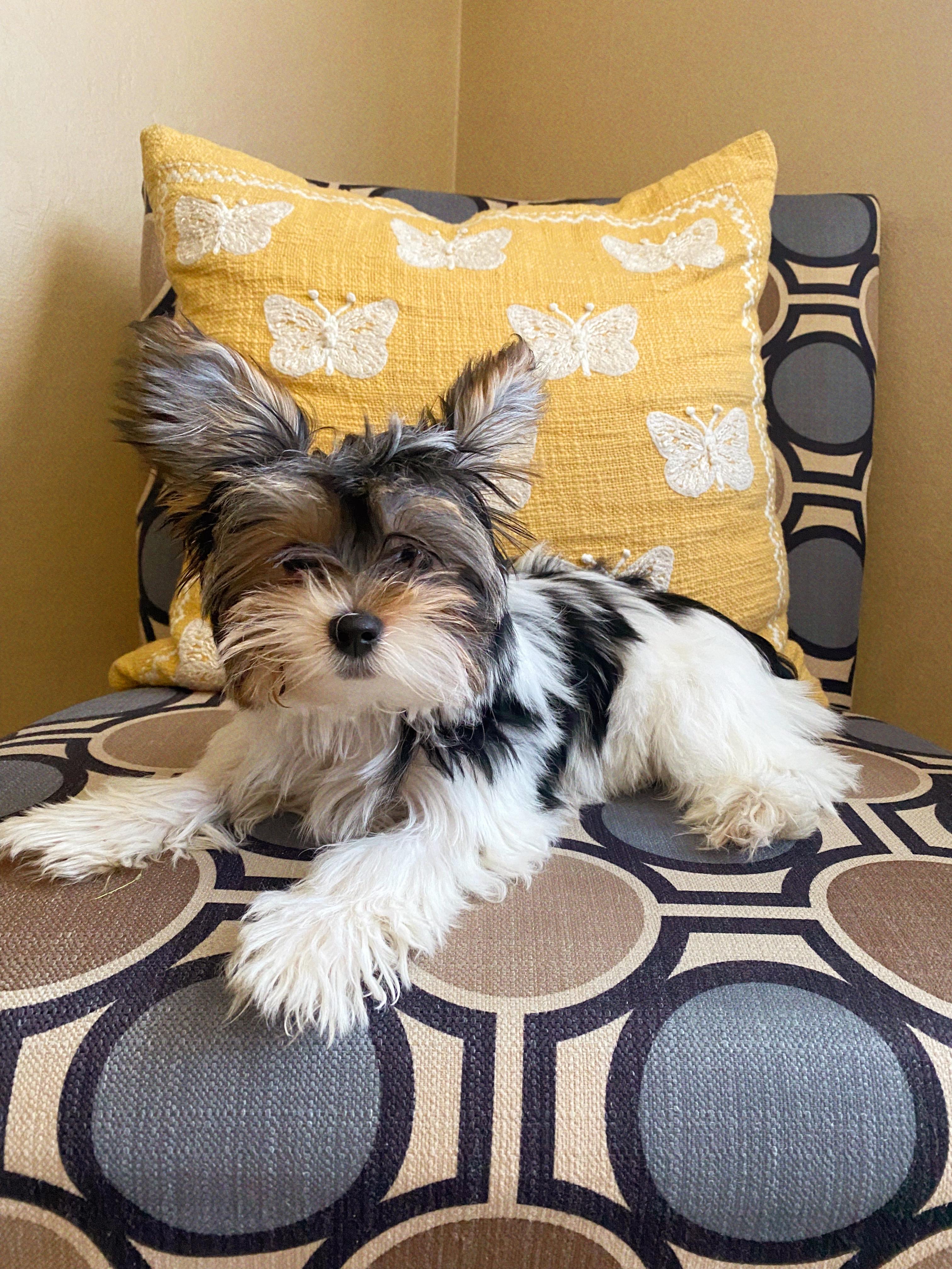 Cinta 💜 Female Traditional Yorkie. 3 weeks old ~ 1.92 lbs. Super Sweet & Chill. Ready for adoption on 5/25.