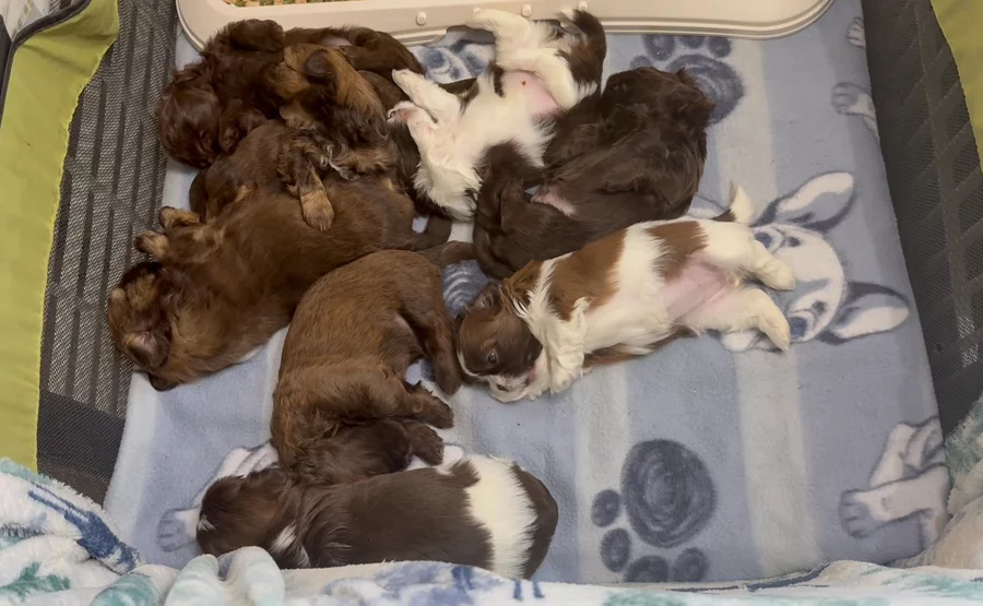 Zoey’s 8 little stars are doing wonderful and growing every day! 🐾💕