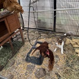 Glori stands 10.5" and weighs 10lbs. She loves to play in the water from the hose. She is very affectionate and sleeps in bed with us at night.