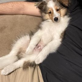 "Kaizen" MDR1, VWD, CEA, GM, DM, DMS all clear/clear. Bite correct. Eyes good. DMS Low Risk. 11.85” and 9lbs I have NO idea why this site insists that Sable & White is non-standard. It is the MOST standard color there is in Shelties! Kaizen is an absolutely stunning boy! Fully DNA tested, clear/clear, pure-for-sable male, that is undersize with natural tipped ears! Kaizen is very unusual in that he plays an active role in raising and caring for his puppies. He is a very sweet and loving dad. He's also a spoiled Momma's Boy that I take with me everywhere I can. He has earned AKC Trick Dog Novice, Intermediate and Advanced titles. His dad, Durango, has many AKC Champions in his pedigree. His Grandpa, Elvis is an International champion in Agility and holds multiple Agility and Rally titles. Kaizen loves Triebball and agility type practice. If you are looking for a sweet, tiny, Sheltie with loads of class and presence, Kaizen is your daddy!