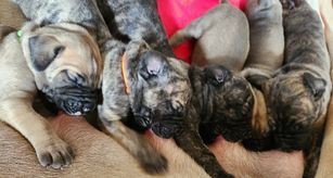 Our puppies include brindle and fawn. Colors will vary depending on the parent dogs.