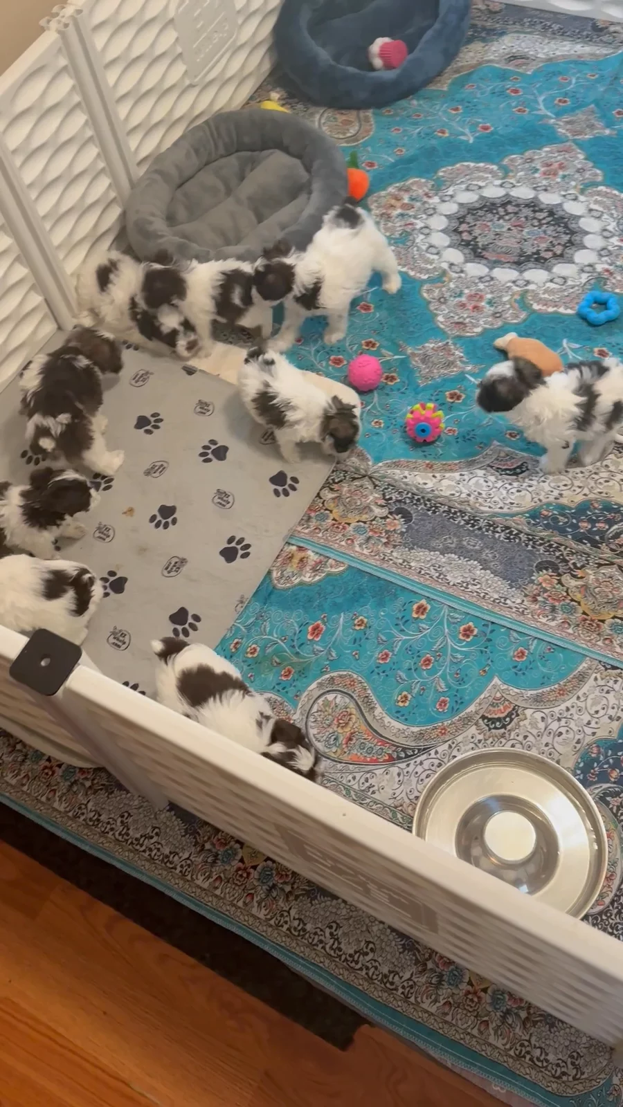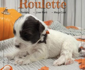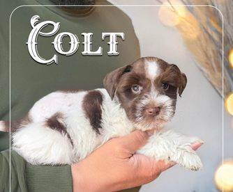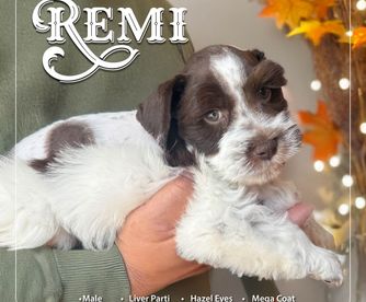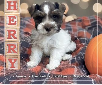 Our puppies include parti, liver, salt and pepper, black and silver, and black. Colors will vary depending on the parent dogs.