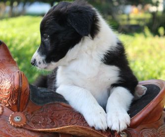 We absolutely adore this little dog and all the personality and drive she possesses. I was looking for a dog that has it all, and she has exceeded my expectations. Her personality, athleticism, drive, and willingness impress me daily. She has shown an eagerness to be forward on livestock with a nice bite, and a very strong desire to work, balanced by a great off switch. She couldn't be more content with young kids and loves attention from men. I could go on and on about this dog, she comes from incredible bloodlines, and it shows.