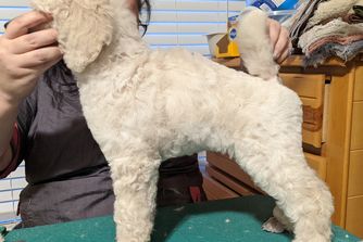 After showing for a couple of years, with the help of my mentor who also shows and has been breeding poodles for years, I got my first breeding female. My mentor and I chose a wonderful stud and have begun our journey.