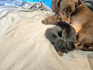I'm Jill L., the breeder behind Lats Doxies located in Wenatchee, WA. Our dogs have wonderful temperaments and have the added bonus of producing beautiful color. They originate in the UK, so are registered with the UKKC, and now residing in the USA, are also registered with the AKC.