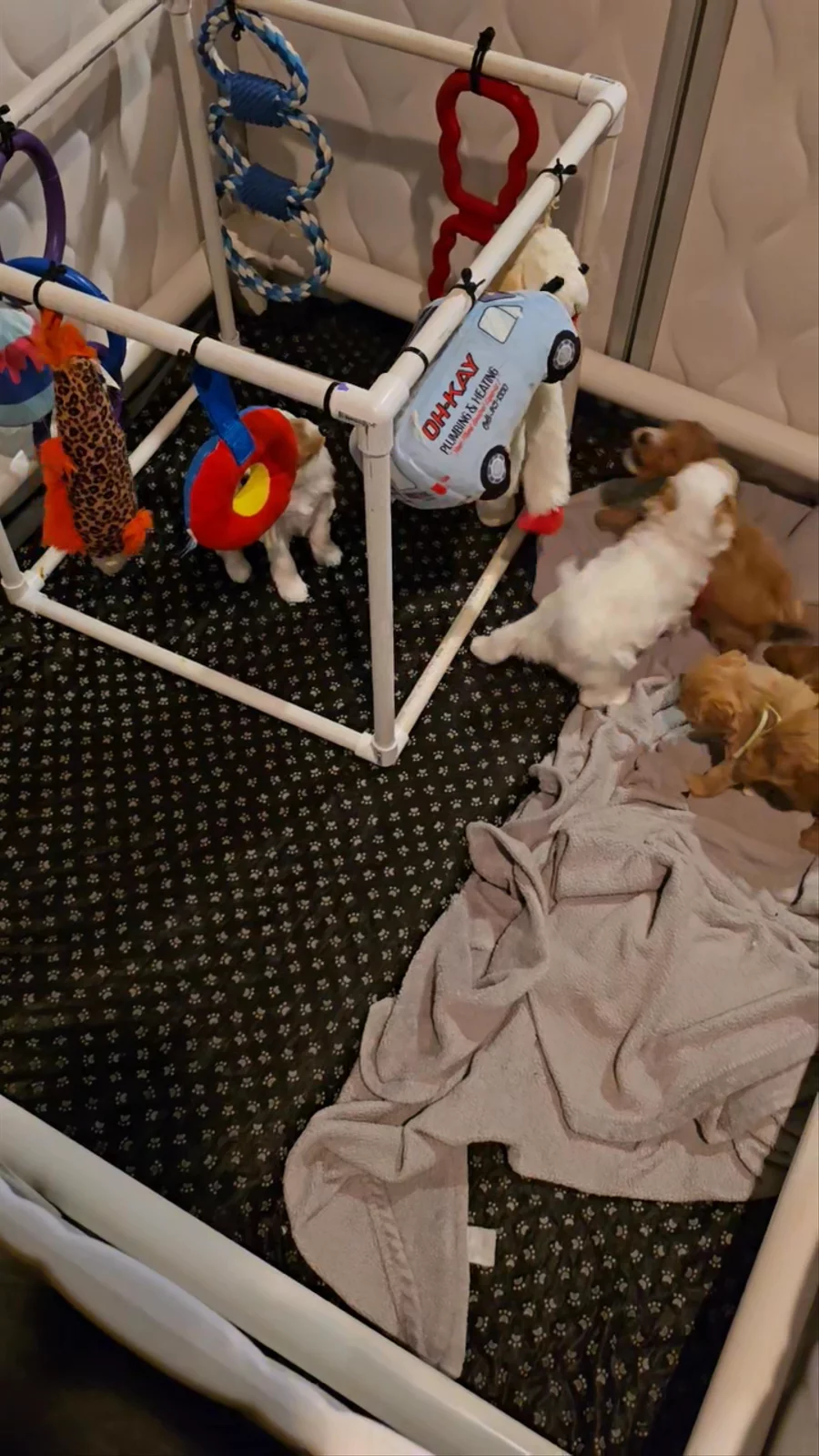 Stimulation toys with the puppies! They love their play time.