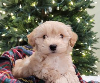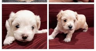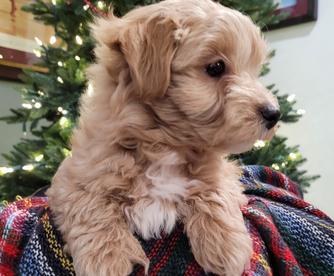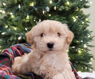The parents live with me as full-time family pets. Puppies are wormed, vet checked and given their first set of puppy shots before they leave. They are considered an F1 Maltipoo, which is a 50/50 cross between red poodle and white maltese, while their coloring will vary.