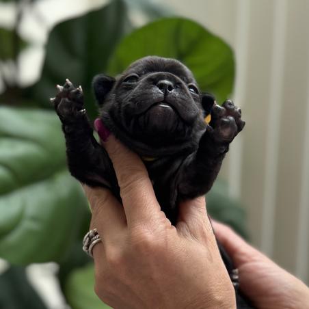 Rosa is a female French Bulldog. Carefully selected as a great representative of her breed, Meaghan decided to make her part of their program. Meaghan has passed Good Dog’s screening process, which involved a review of their breeding practices, environment, and the mental and physical health of their dogs.