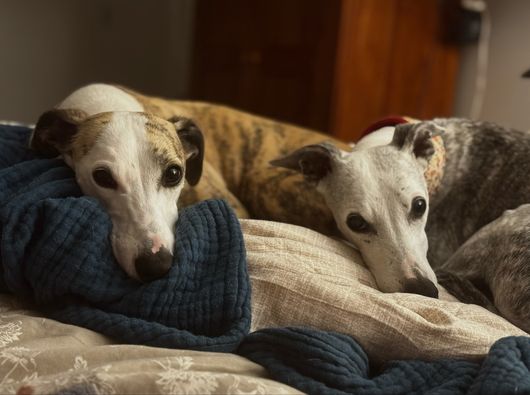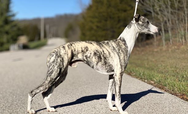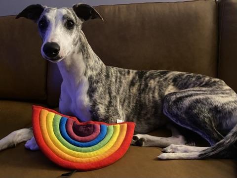 Calvin is a male Whippet. Carefully selected as a great representative of his breed, Alex/Maureen decided to make him part of their program. Alex/Maureen has passed Good Dog’s screening process, which involved a review of their breeding practices, environment, and the mental and physical health of their dogs.