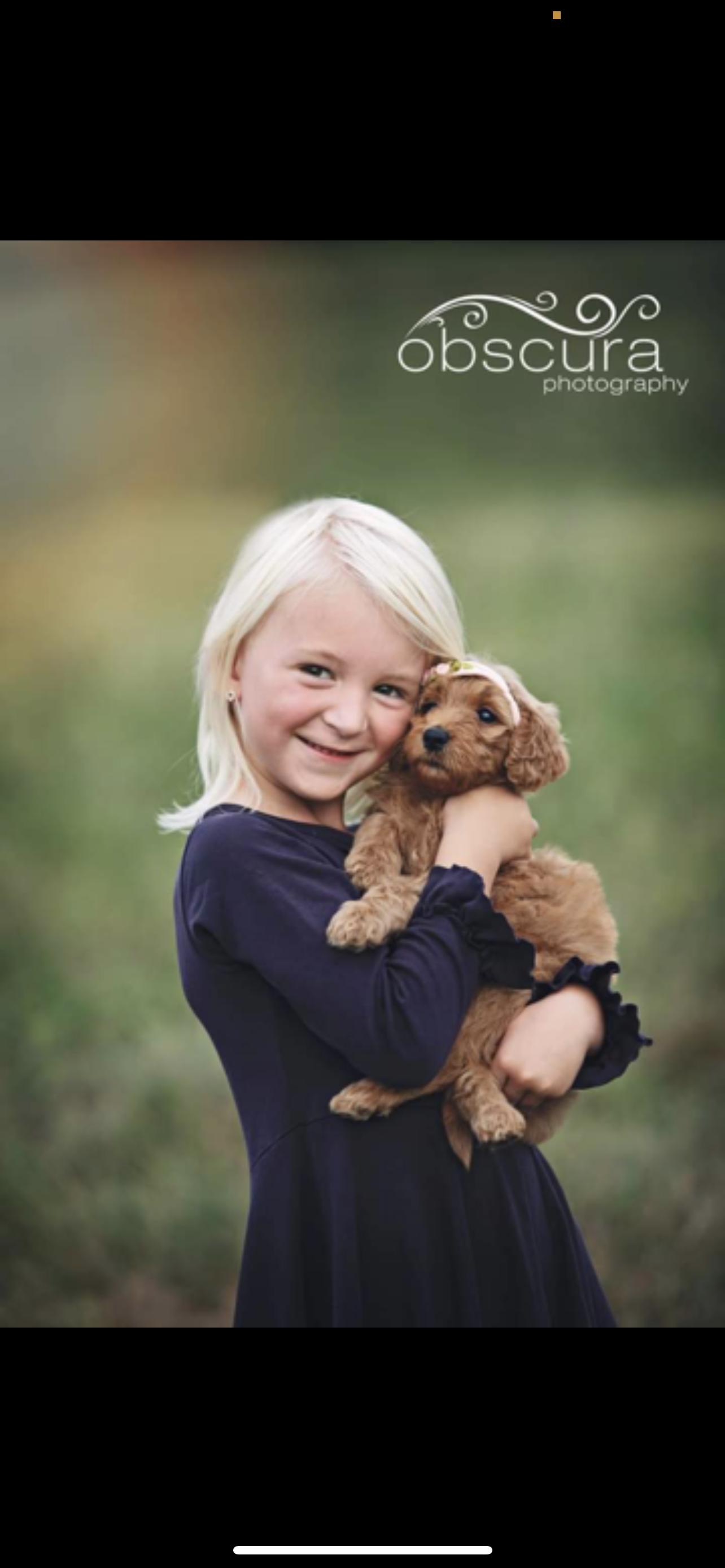 Kimber is a female Goldendoodle. Carefully selected as a great representative of her breed, Sophia decided to make her part of their program. Sophia has passed Good Dog’s screening process, which involved a review of their breeding practices, environment, and the mental and physical health of their dogs.