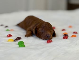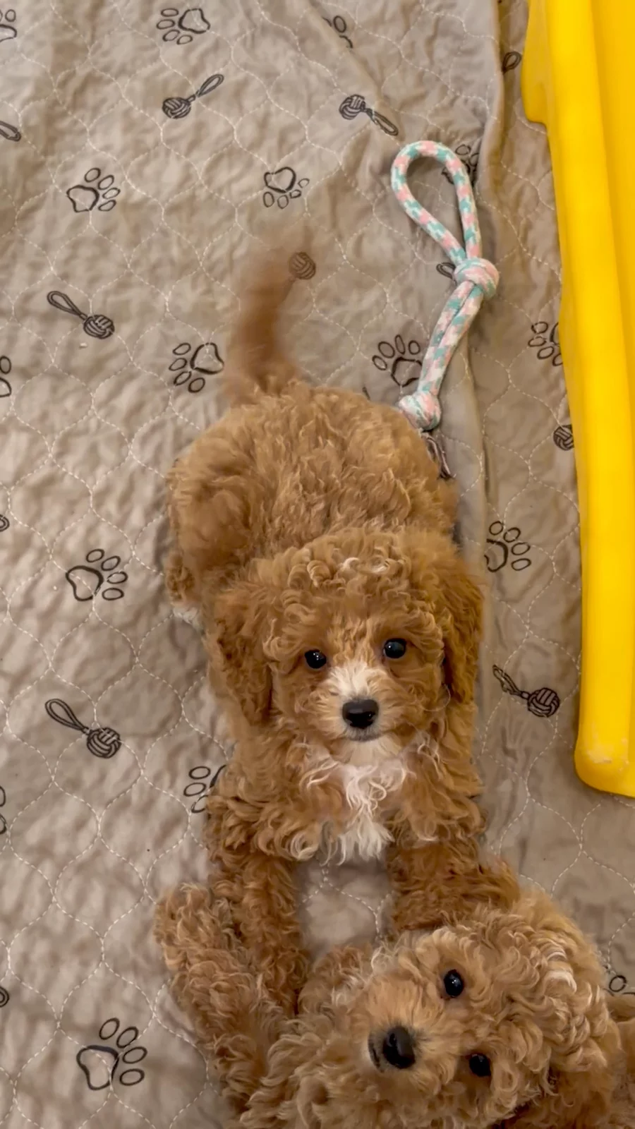 Our puppies include apricot and red. Colors will vary depending on the parent dogs.
