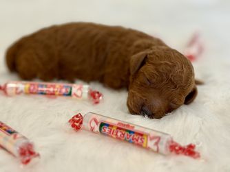 Lilikoi is the “perfect” dog. Truly tiny, dark red, black button nose, and the sweetest snuggle buddy you’ve ever known. She loves to go on outings and has never met someone she didn’t like - especially kids! We adore this girl and cannot wait to meet her puppies!