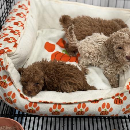 Our puppies include apricot, black, brown, cream, red, parti, and phantom. Colors will vary depending on the parent dogs.