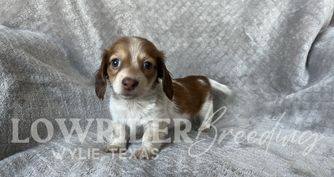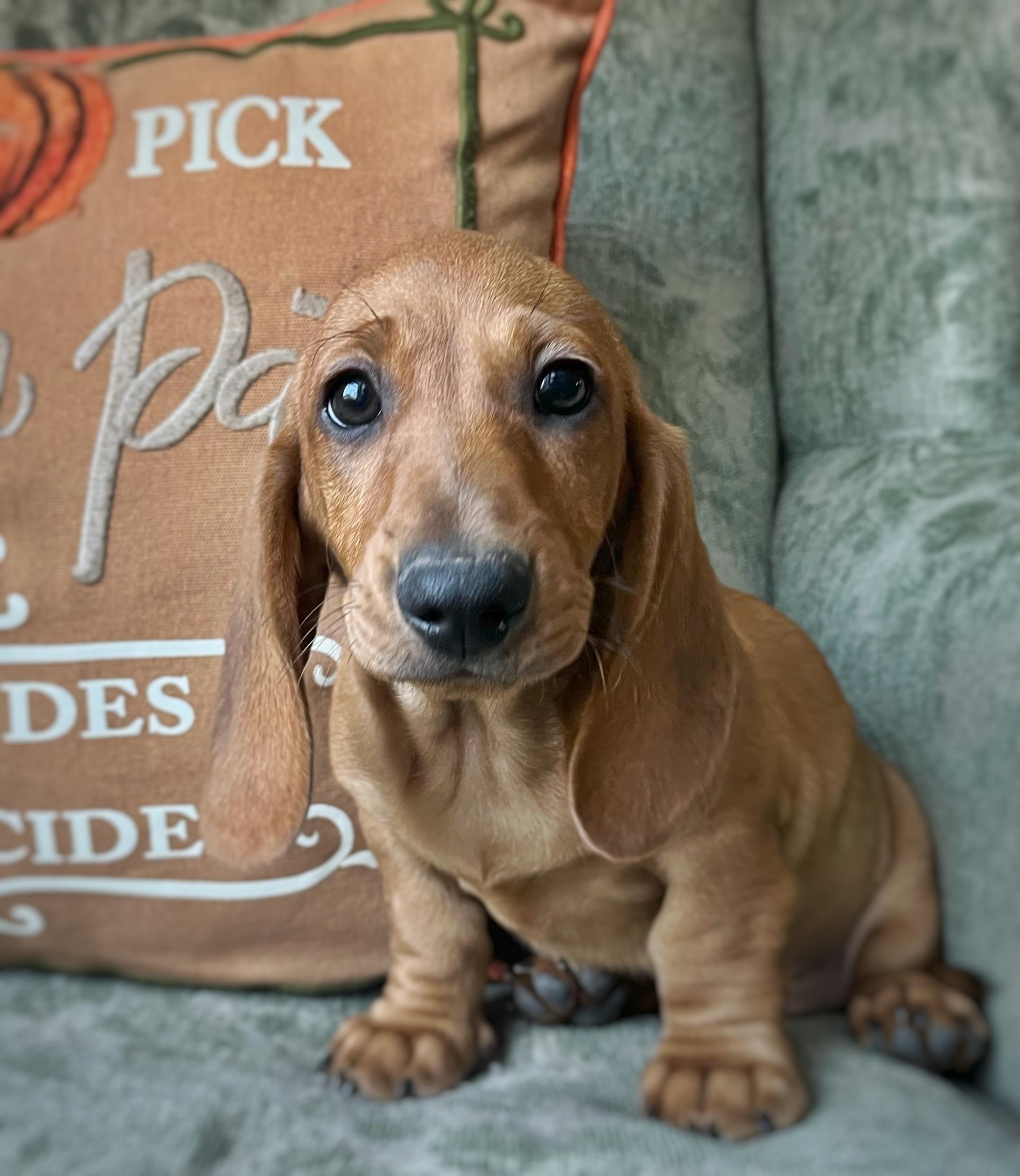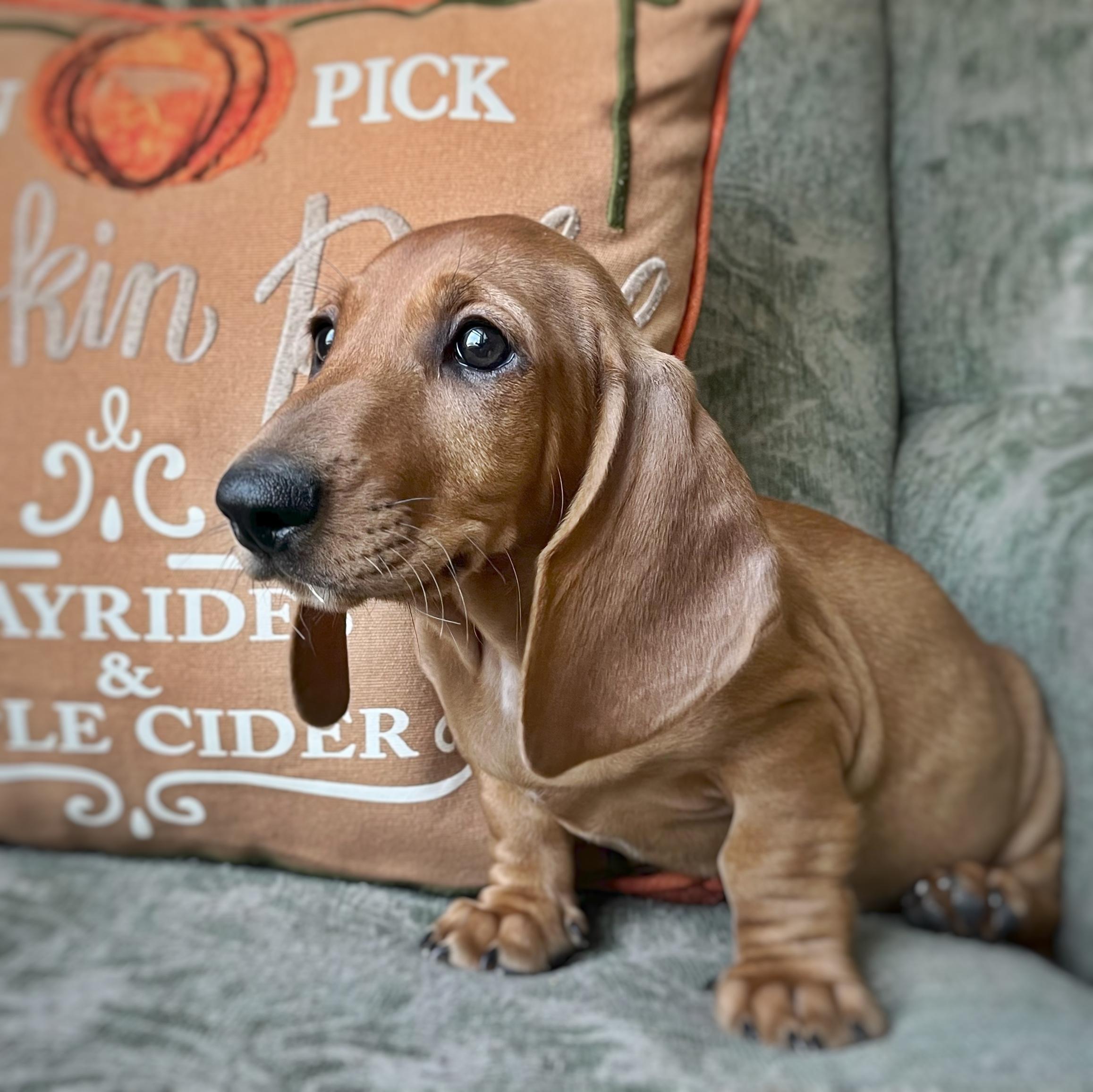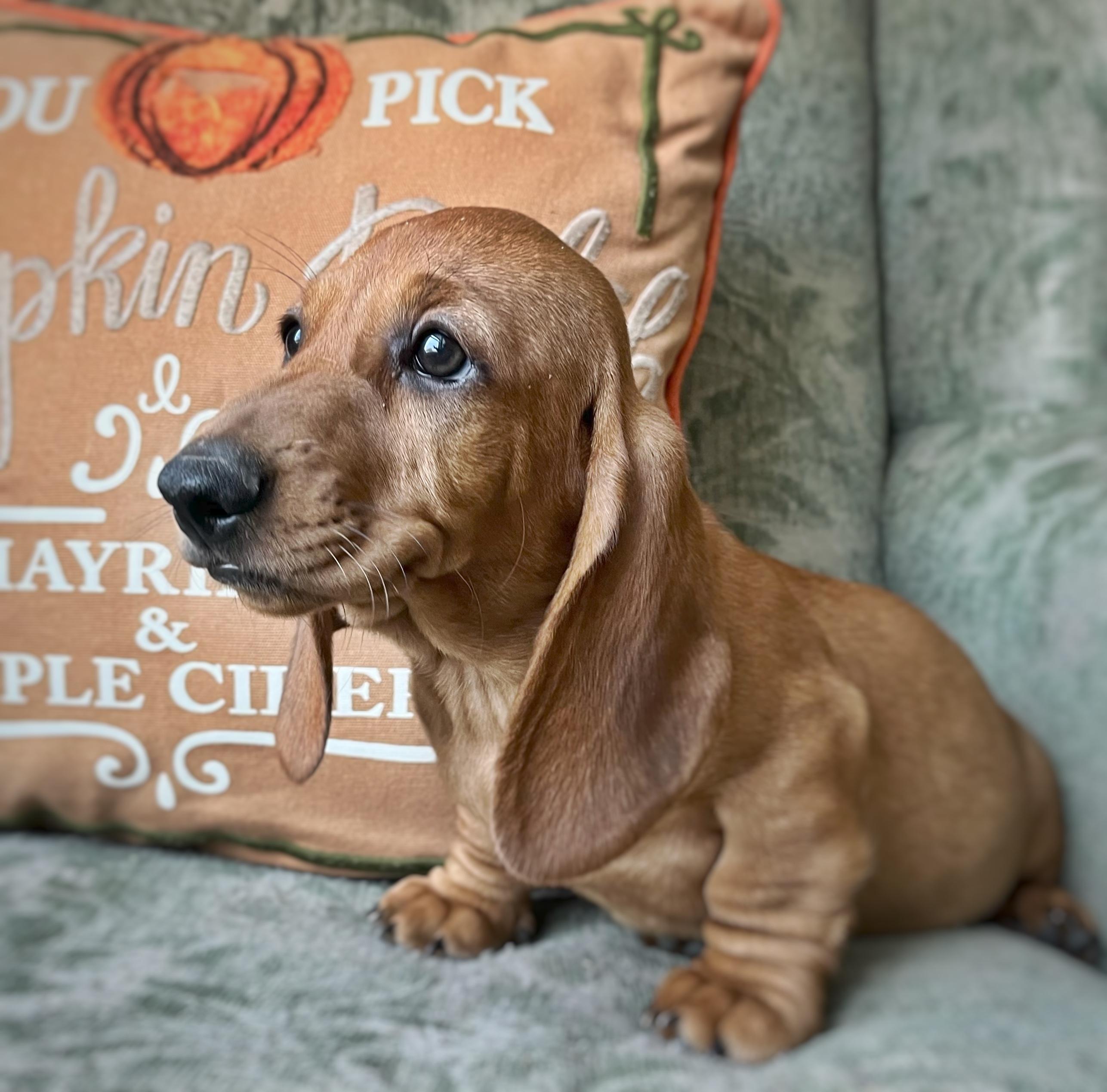 Scarlett is a female Dachshund. Carefully selected as a great representative of her breed, Ashley decided to make her part of their program. Ashley has passed Good Dog’s screening process, which involved a review of their breeding practices, environment, and the mental and physical health of their dogs.