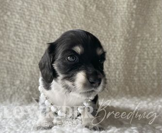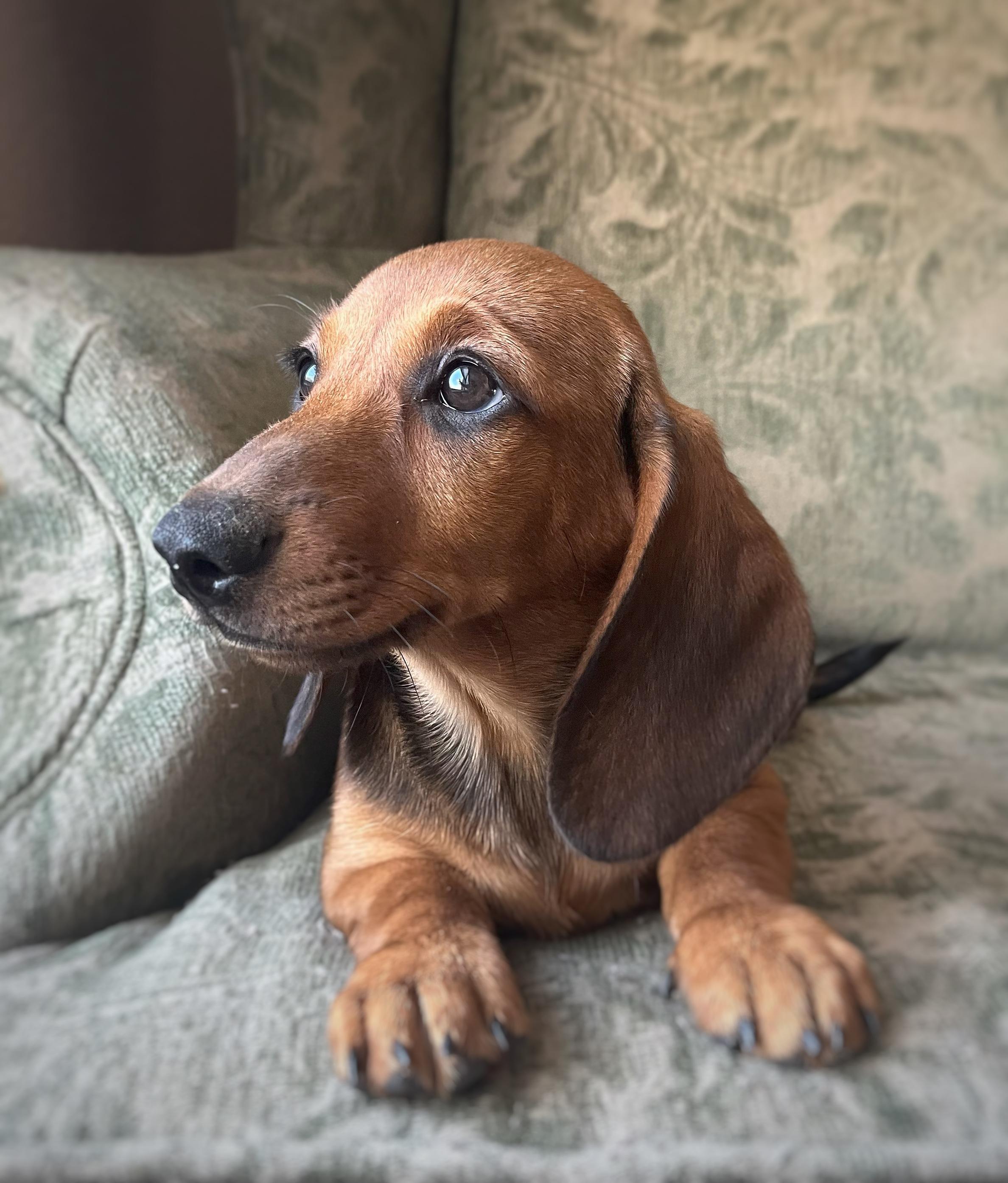 Sage is a female Dachshund. Carefully selected as a great representative of her breed, Ashley decided to make her part of their program. Ashley has passed Good Dog’s screening process, which involved a review of their breeding practices, environment, and the mental and physical health of their dogs.