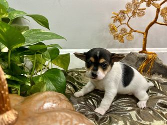 Chihuahua puppies have smooth coats. Coat types may vary depending on the parent dogs.