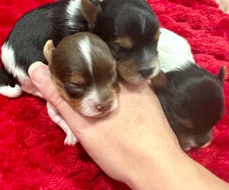 Our Basset Hound puppies include mahogany and white, lemon and white, black brown and white, and black and white. Chihuahua puppies are fawn. Colors will vary depending on the parent dogs.