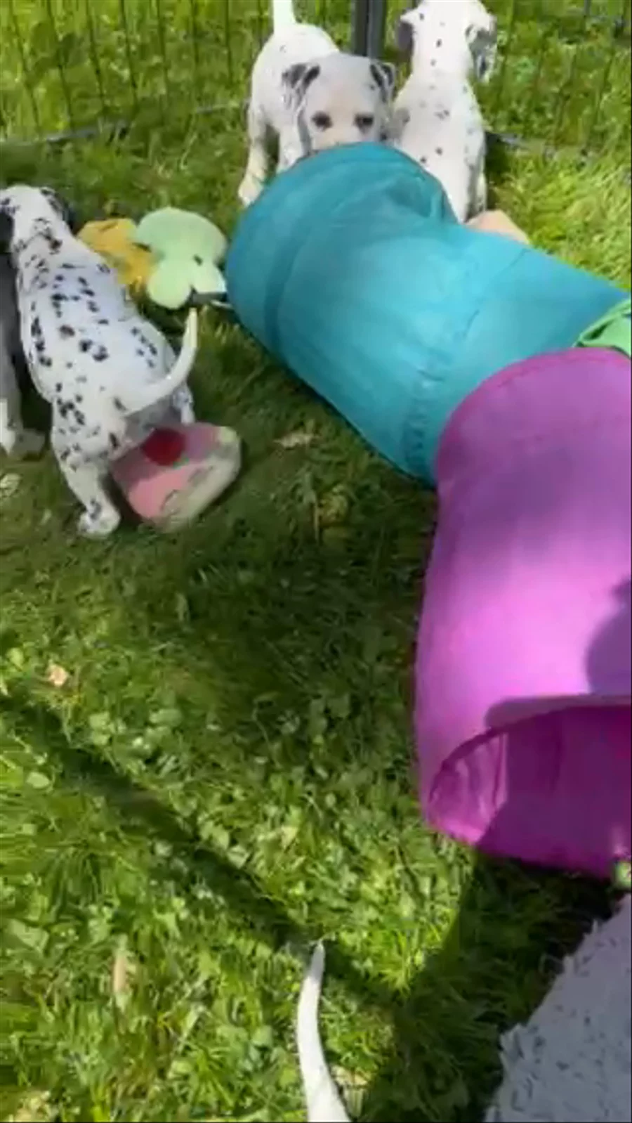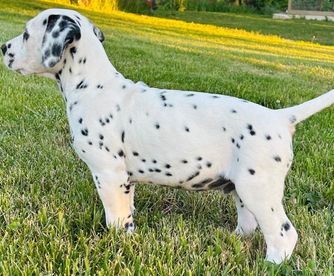 “BAER hearing testing at 6 weeks of age by the University of Missouri Veterinary Hospital Neurology Department (Columbia, MO) 🐾Health check performed by the University of Missouri Veterinary Hospital Local Medicine Department (Columbia, MO) 🐾2 ROUNDS of DAPPv (distemper virus, canine adenovirus (hepatitis), adenovirus type 2 (respiratory), parainfluenza, and parvovirus), multiple oral dewormer, and a health sheet with serial number sticker and date vaccines given. 🐾AKC (American Kennel Club) registered 🐾30 days of free pet insurance through AKC if you choose to sign up. All of Lazy B Bassets and Dalmatian puppies also come with a "puppy pack” containing the following items: 🐾A collar 🐾A Lazy B Bassets and Dalmatian leash 🐾Purina Pro Plan Puppy Food Savor Chicken and Rice recipe 🐾training treats 🐾toys 🐾a small blanket with mother/siblings scents 🐾a Lazy B Bassets and Dalmatians binder with: *copy of limited AKC registration or full AKC rights contract *copy of deposit contract *copy of BAER testing results *puppy health sheet with vaccine serial number stickers with vaccine protocol attached *AKC application paper. I will present a deposit contract that will need to be signed as deposit is obtained. ($100).”