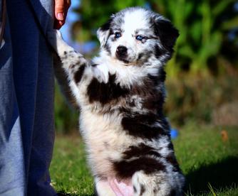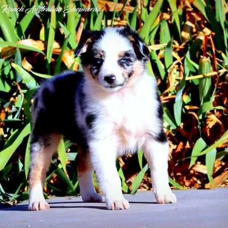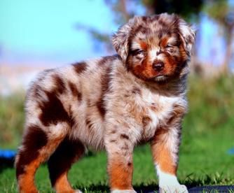 Our Miniature Australian Shepherd puppies include red & white, black & white, blue merle, black tri, red tri, red merle, red, and black. Australian Shepherd puppies include red & white, black & white, black, red merle, blue merle, red, dilute red, dilute blue, black tri-color, and red tri-color. Toy Australian Shepherd puppies include black tri, blue merle, red merle, and red tri. Colors will vary depending on the parent dogs.