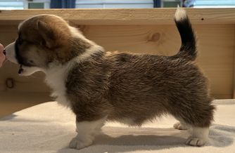 Our Pembroke Welsh Corgi puppies include sable, black and tan, and white and red. Labrador Retriever puppies are chocolate. Colors will vary depending on the parent dogs.