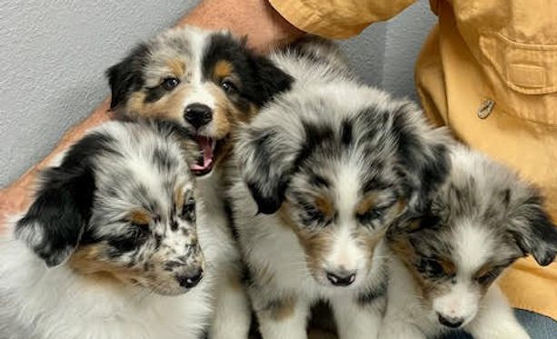 Our puppies include red merle, blue merle, black tri-color, and red tri-color. Colors will vary depending on the parent dogs.