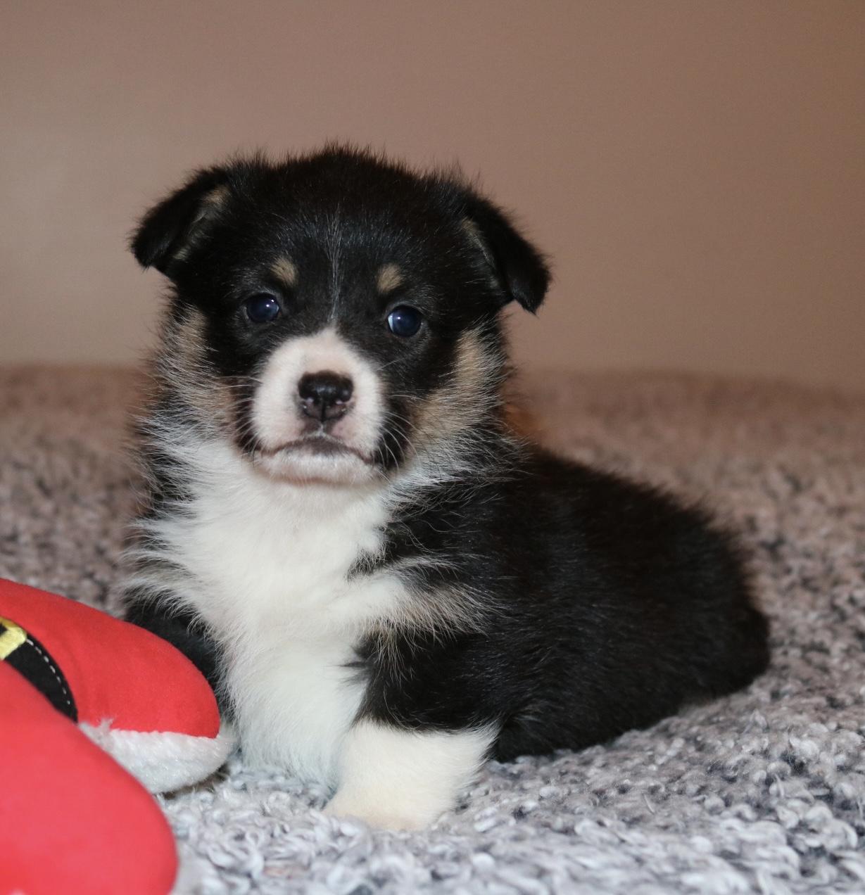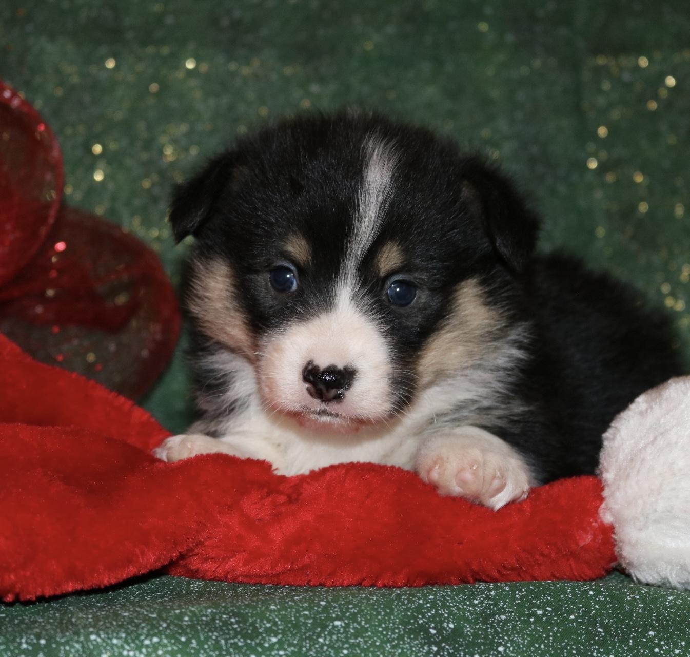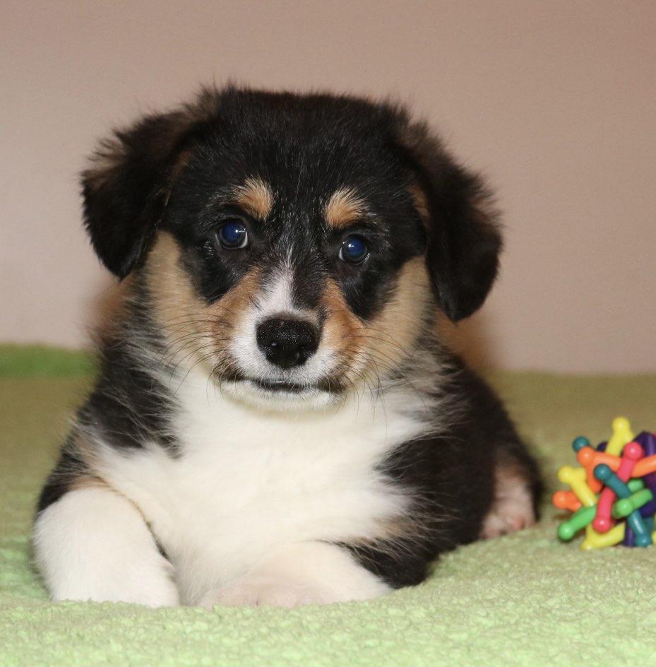 Paxton is a beautiful tri-colored male with a nice collar. He is very affectionate and loves to play with the kids.