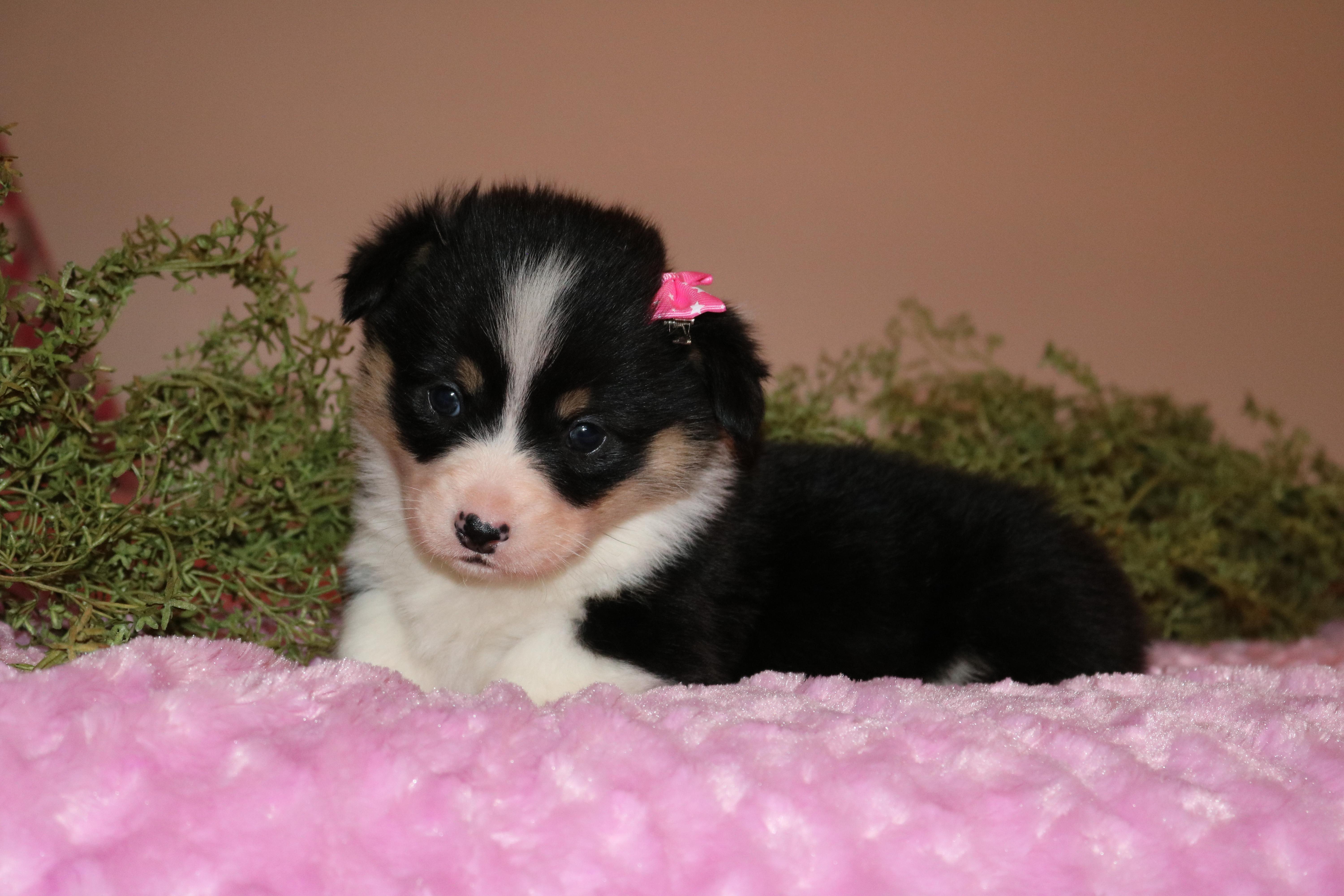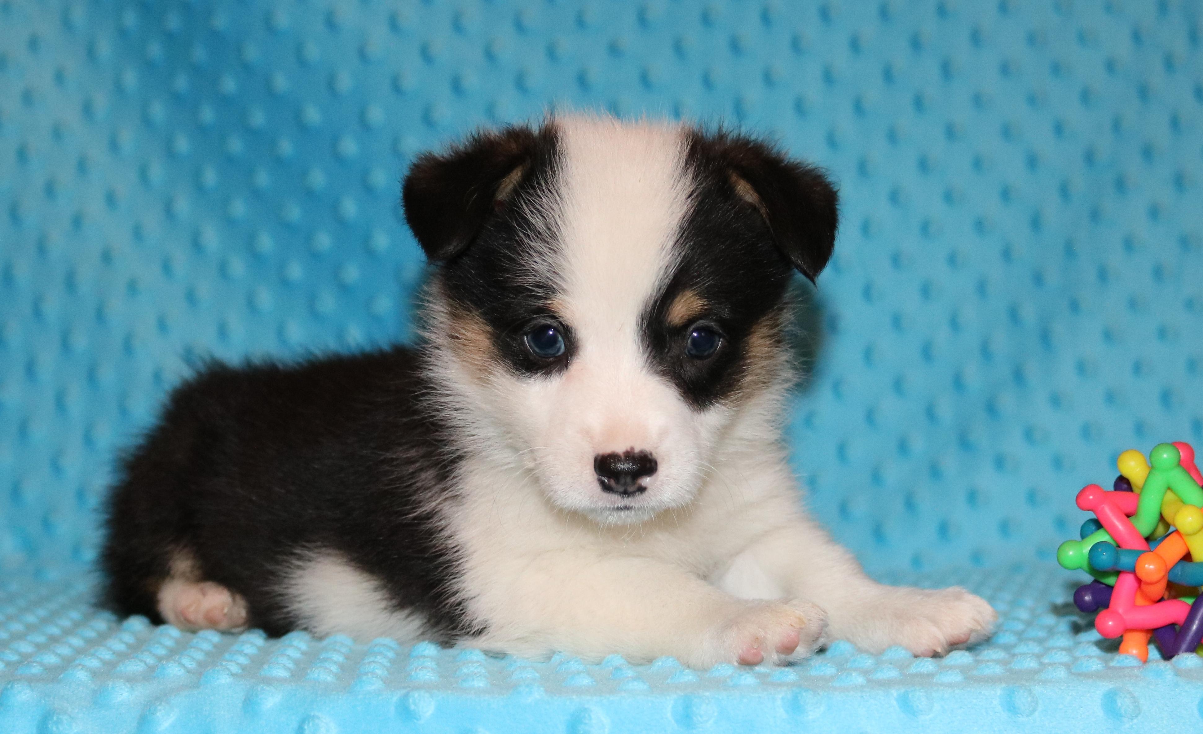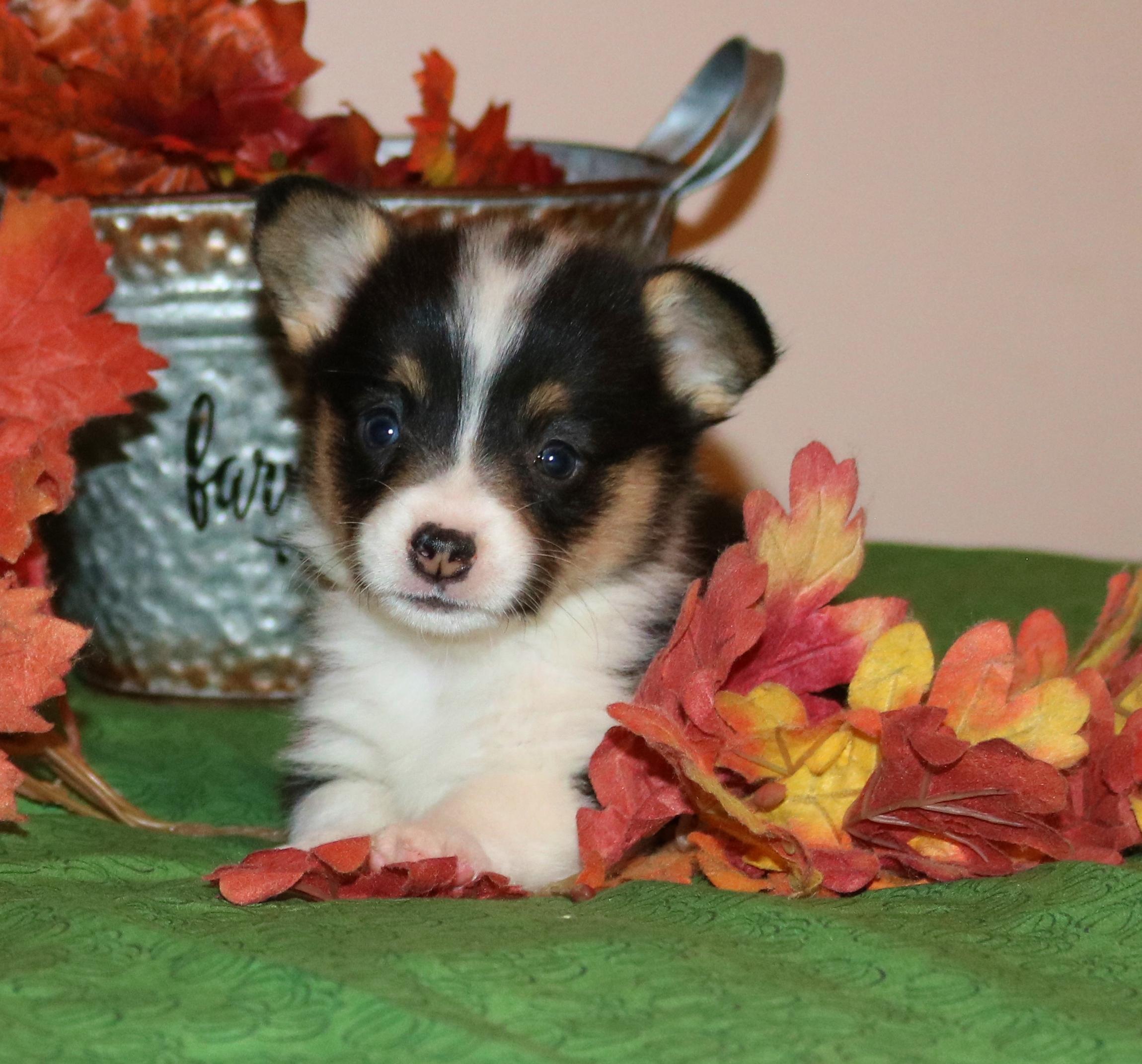 Paxton is a beautiful tri-colored male with a nice collar. He is very affectionate and loves to play with the kids.