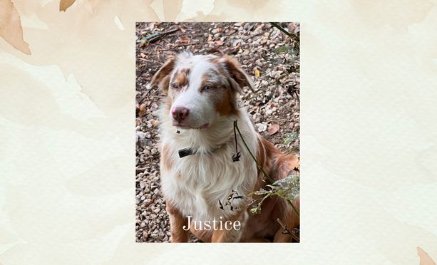 Justice is a standard AKC Red merle fella with tan points!