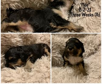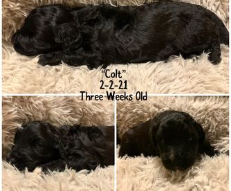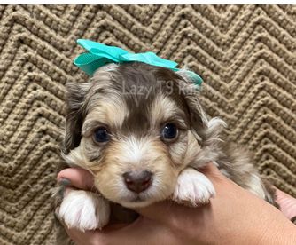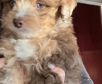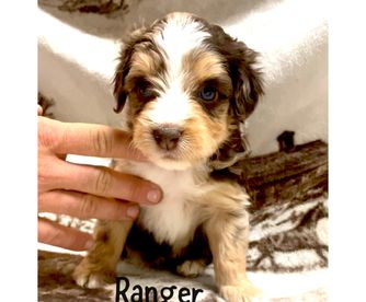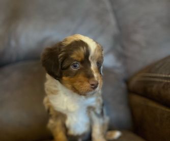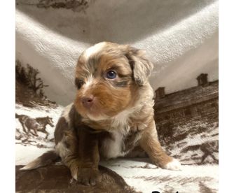 Our Miniature Australian Shepherd puppies include blue merle, red merle, and red. Aussiedoodle puppies include blue merle, red merle, black tri-color, and red tri-color. Colors will vary depending on the parent dogs.