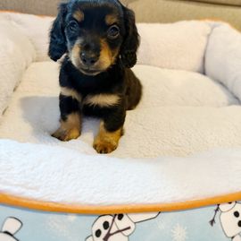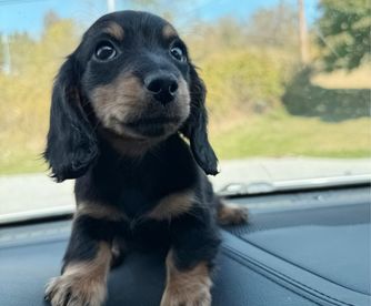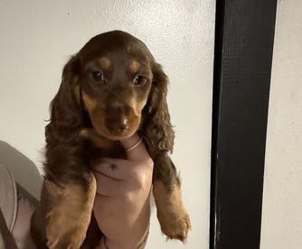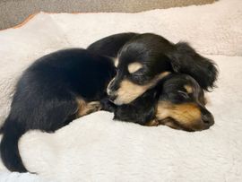 Dachshund puppies have longhaired coats. Coat types may vary depending on the parent dogs.