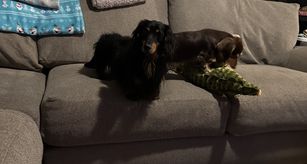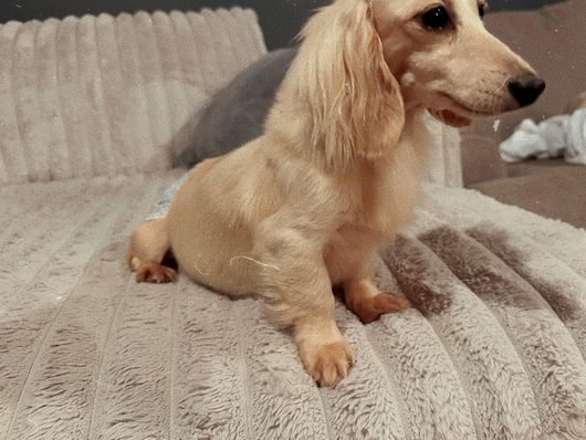 Glitter is a beautiful full cream long haired mini dachshund. She is a wonderful mother and has a wonderful personality!