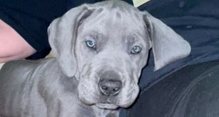 We began breeding Weimaraner's in 1991. We raised them as a family. We were happy to find our puppies new homes who became new friends. We got into Great Danes in 2010 as the kids got older and moved away. Joan is my 4th great Dane and she has such a loving personality and excellent confirmation. She just had her 2nd litter of puppies. The pups are exposed to adults, children and other dogs.