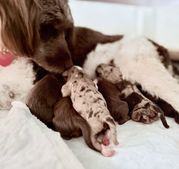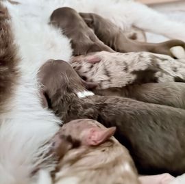 Rebekah is am amazing breeder, dog trainer, and person. She responds quickly to all questions. She shares her knowledge freely and genuinely cares about her pups. The dogs are socialized, potty trained, and very loving when you meet them. It is truly unbelievable! The dogs have the right environment, they have playmates, get exercise, and up-to-date vaccinations. Her family is so generous with their time and truly love the pups! Their early upbringing creates a world of difference. Our dog had a 10 hour trip home and he didn’t cry or make a peep until landing at the airport. When I took a trip to the bathroom, he, now Ollie. snuck out of his crate and into a woman’s lap in a nearby seat. It was just too cute. We couldn’t be happier and would make another trip for the best breeder and super dogs!