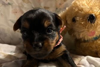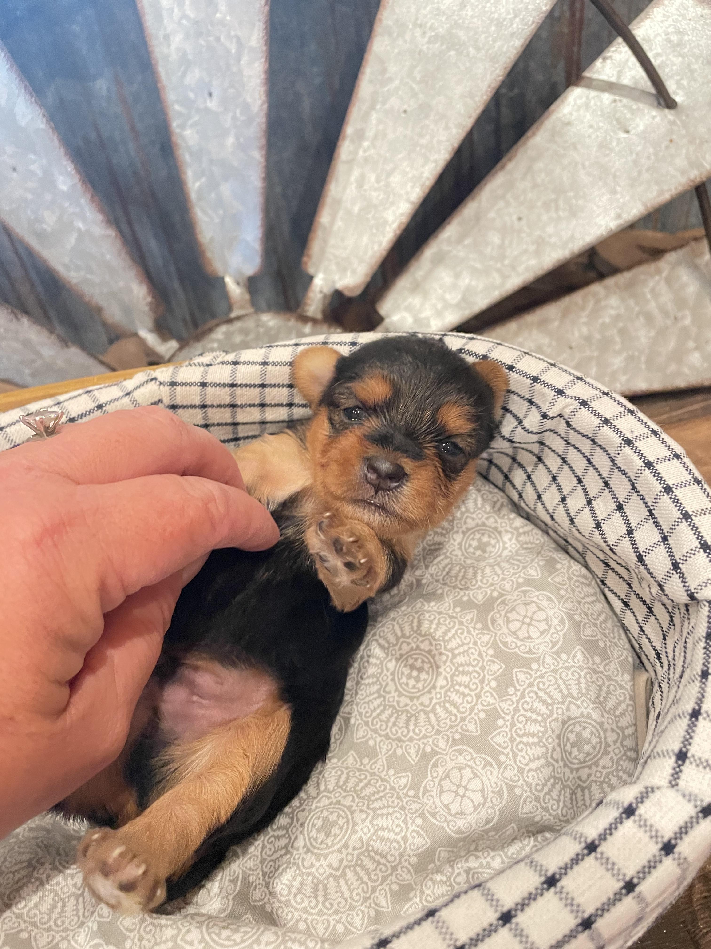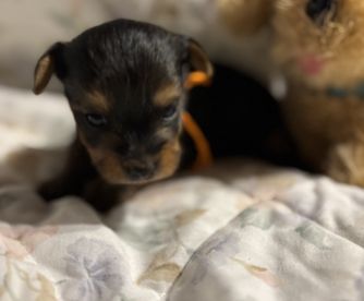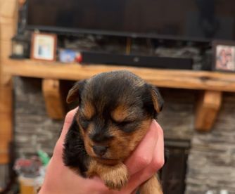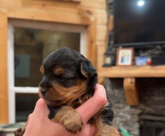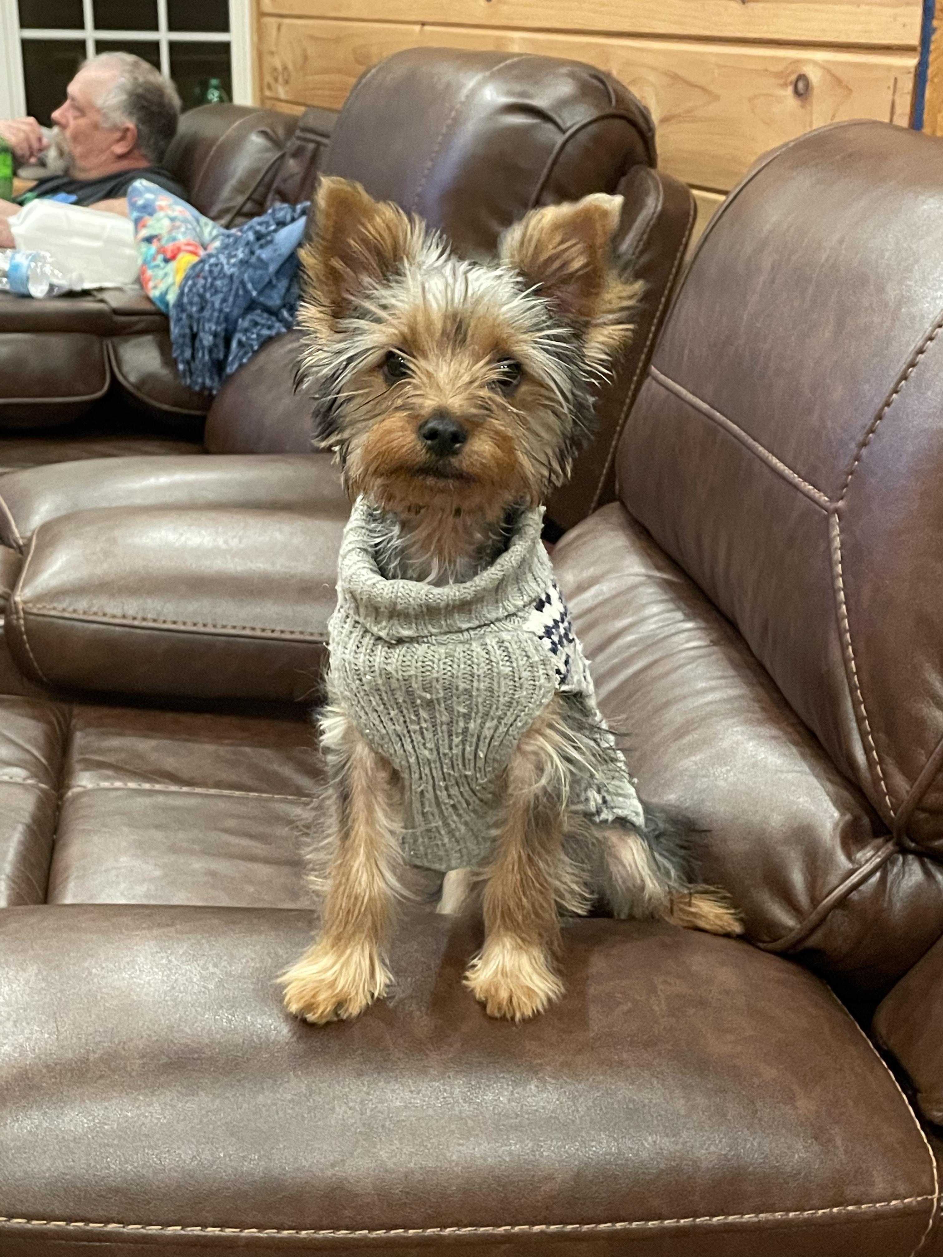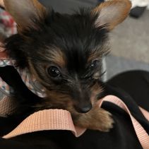 Dixie is our registered CKC Yorkie, she is calm, gentle, and loves to snuggle. Dixie is laid back and loves attention!!