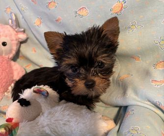 Our Yorkshires live in loving homes with kids running everywhere so they are great with people from day one. Our Yorkies are not considered dogs, they are our family!!
