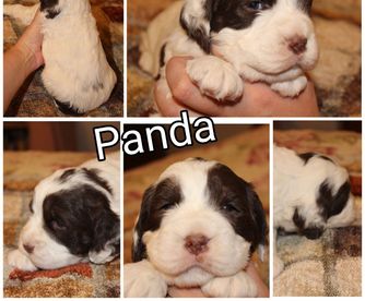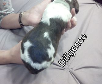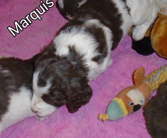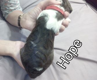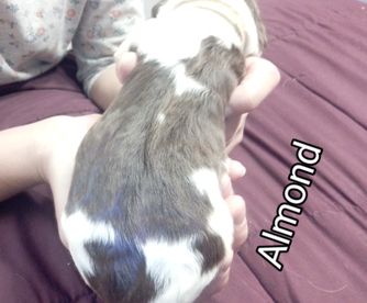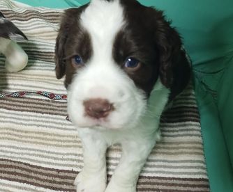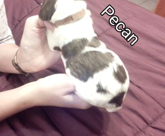 Our puppies are liver and white. Colors will vary depending on the parent dogs.