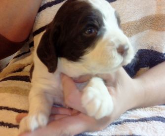 I began my research and became dedicated to obtaining stock that would suit either pet, or breeder quality. I focus mostly on the field-bred ESS for shorter hair, but have willingly included some part-bench for bone structure. Each puppy will have some experience with leash walking and recall by eight weeks old.