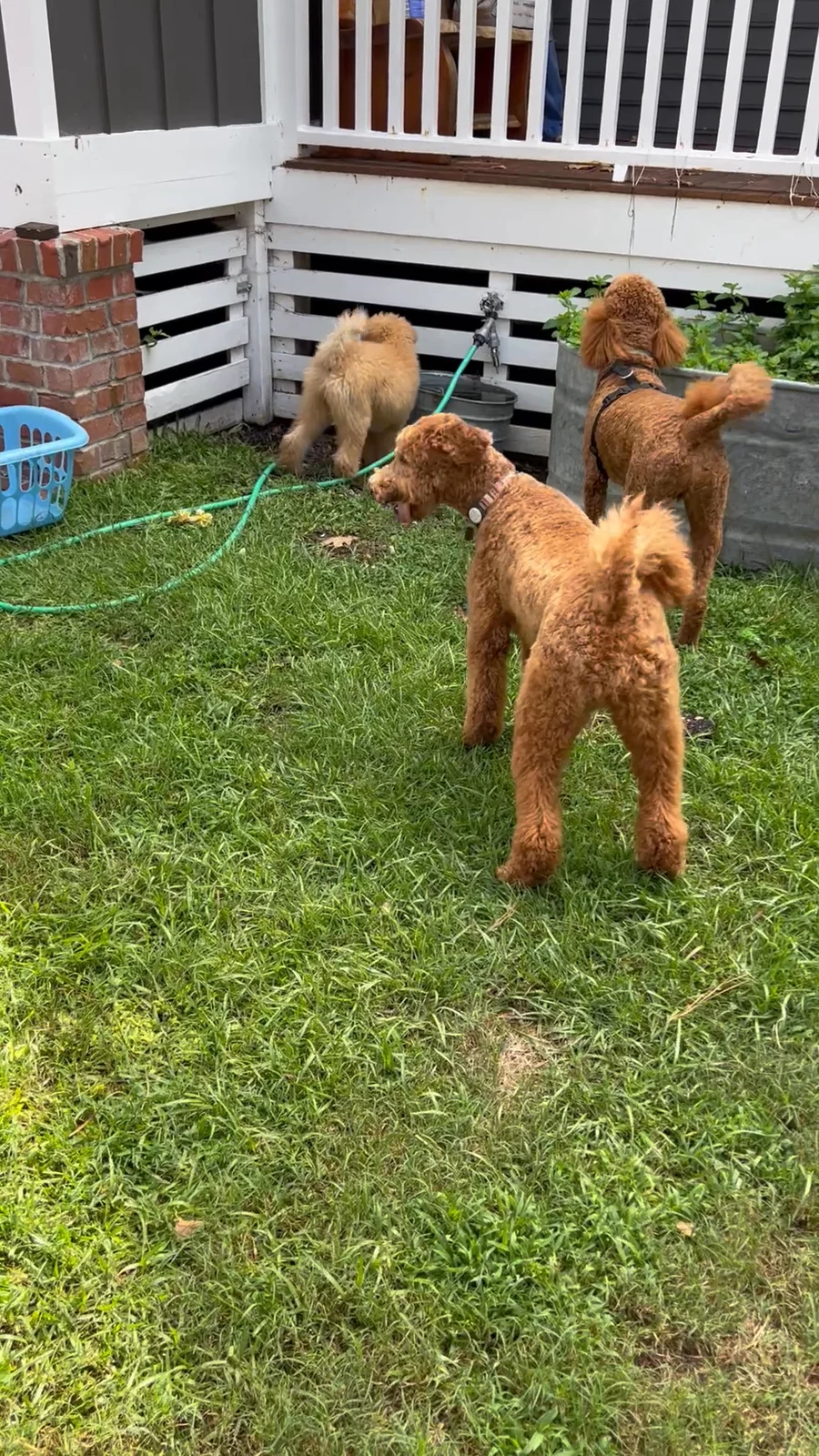 Thunder and lightning, no big deal! We had two big thunder and lightning storms come through the last two nights, directly above us. These puppies were not phased! They didn’t even care. They just played and weren’t even phased by the LOUD thunder outside. These puppies have excellent temperaments and loud noises don’t really phase them. This is just one more confirmation of that and of how wonderful these dogs will be as family pets!