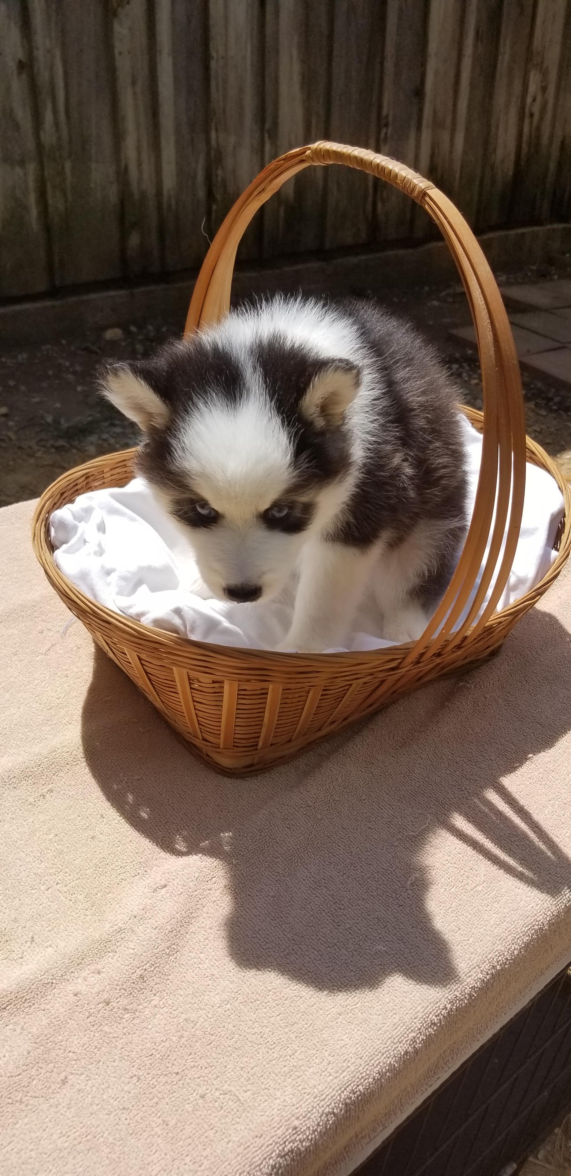 Sky is a female Pomsky. Carefully selected as a great representative of her breed, Bonnie decided to make her part of their program. Bonnie has passed Good Dog’s screening process, which involved a review of their breeding practices, environment, and the mental and physical health of their dogs.
