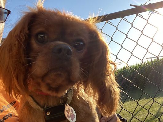 Waffles is a female Cavalier King Charles Spaniel. Carefully selected as a great representative of her breed, Melanie decided to make her part of their program. Melanie has passed Good Dog’s screening process, which involved a review of their breeding practices, environment, and the mental and physical health of their dogs.