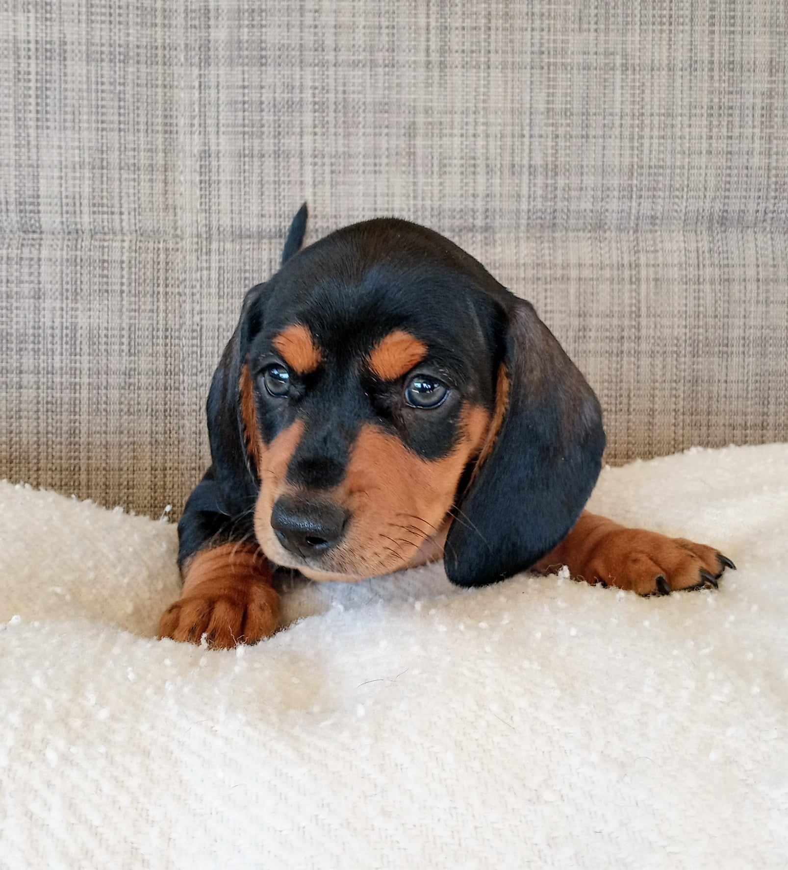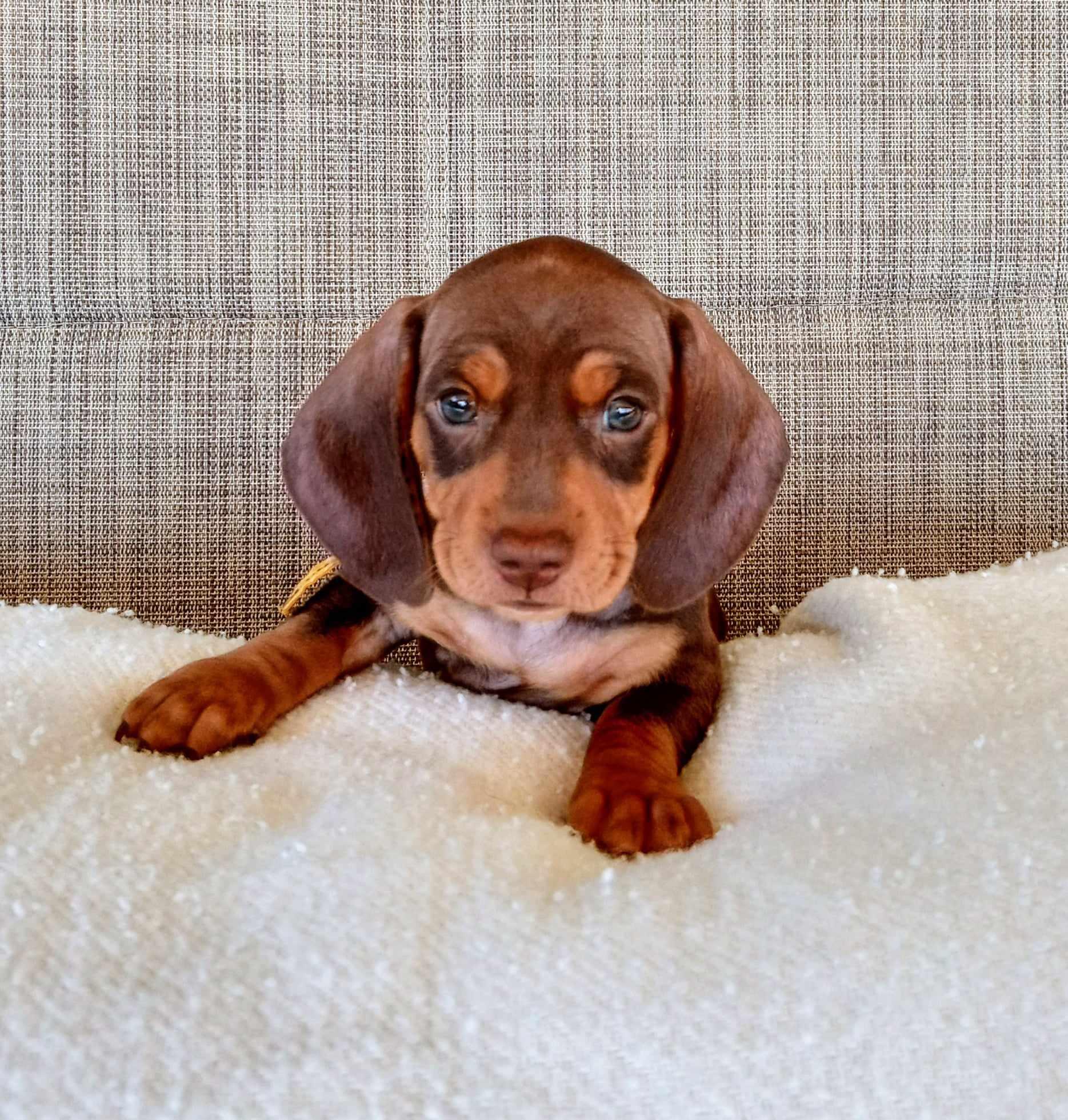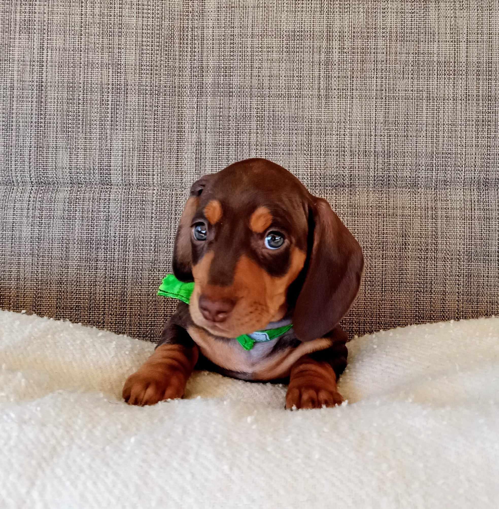 Our puppies include chocolate and tan and black and tan. Colors will vary depending on the parent dogs.