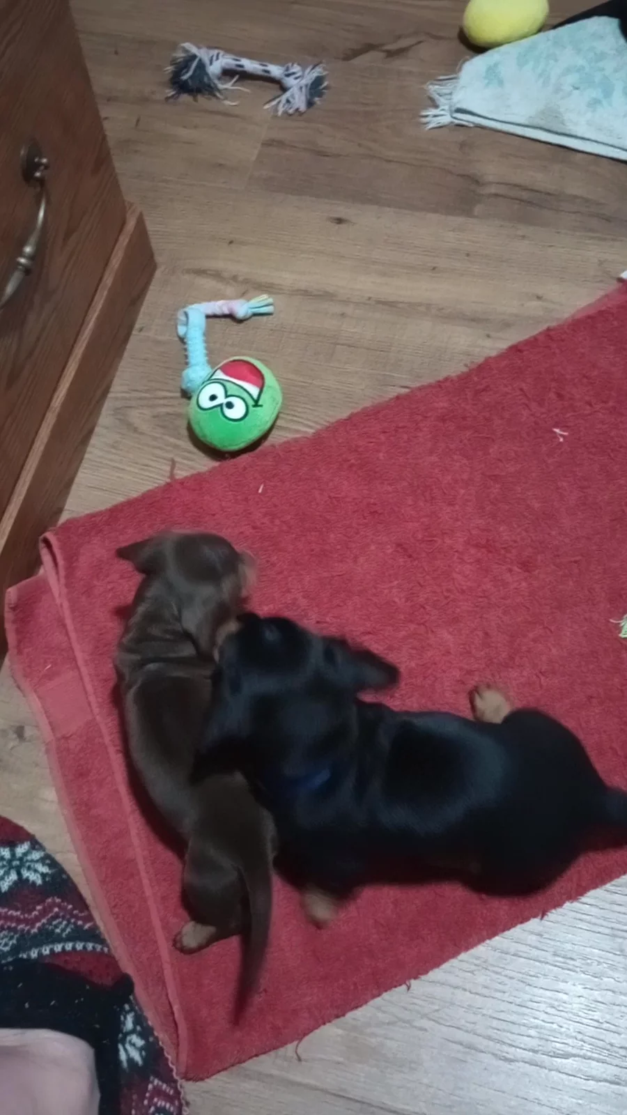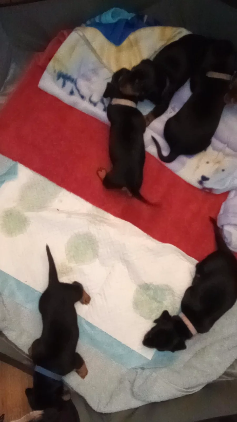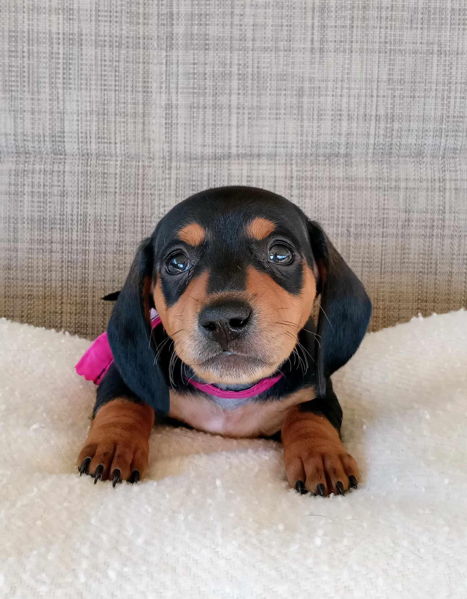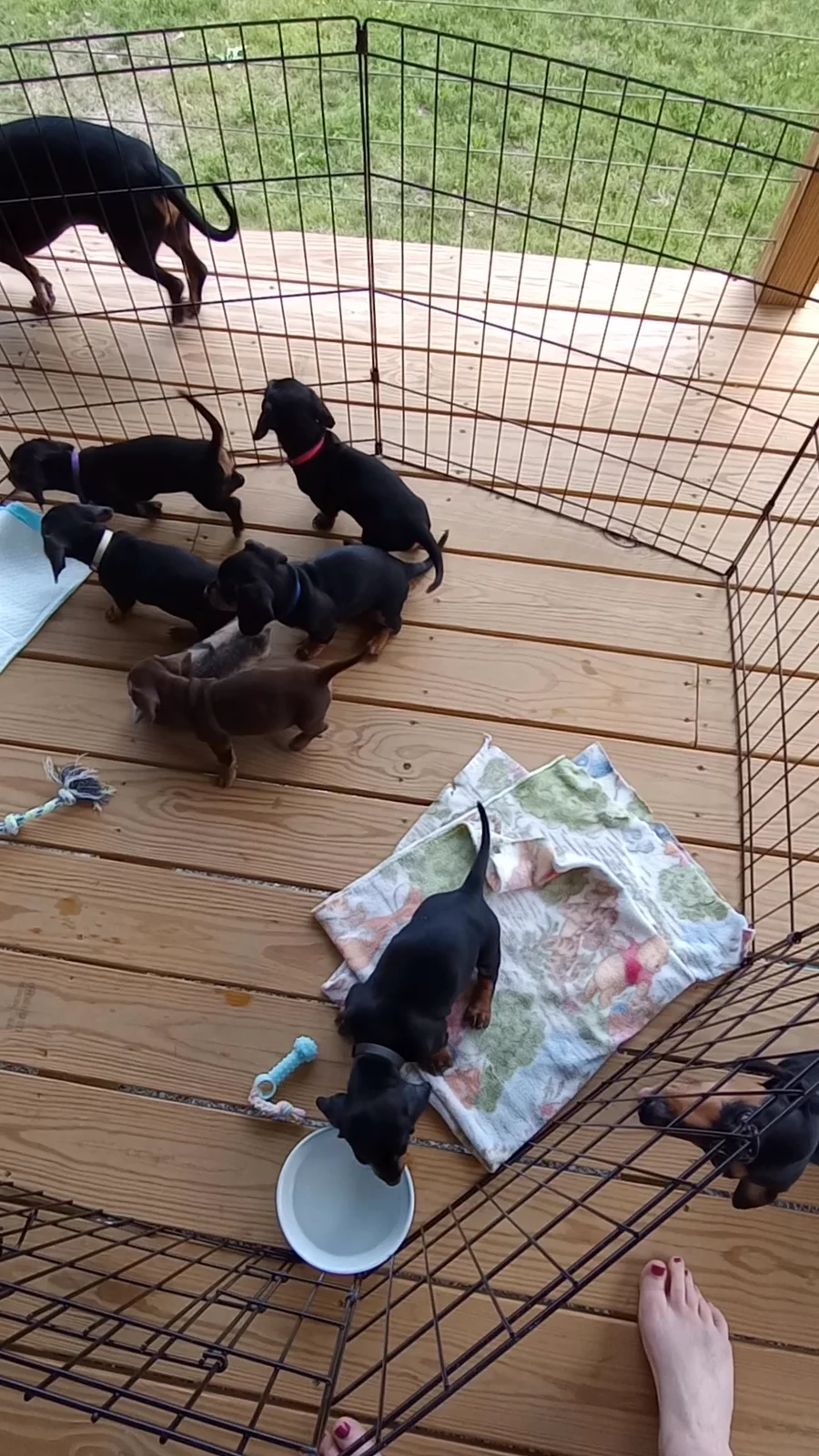 Our puppies include chocolate and tan and black and tan. Colors will vary depending on the parent dogs.