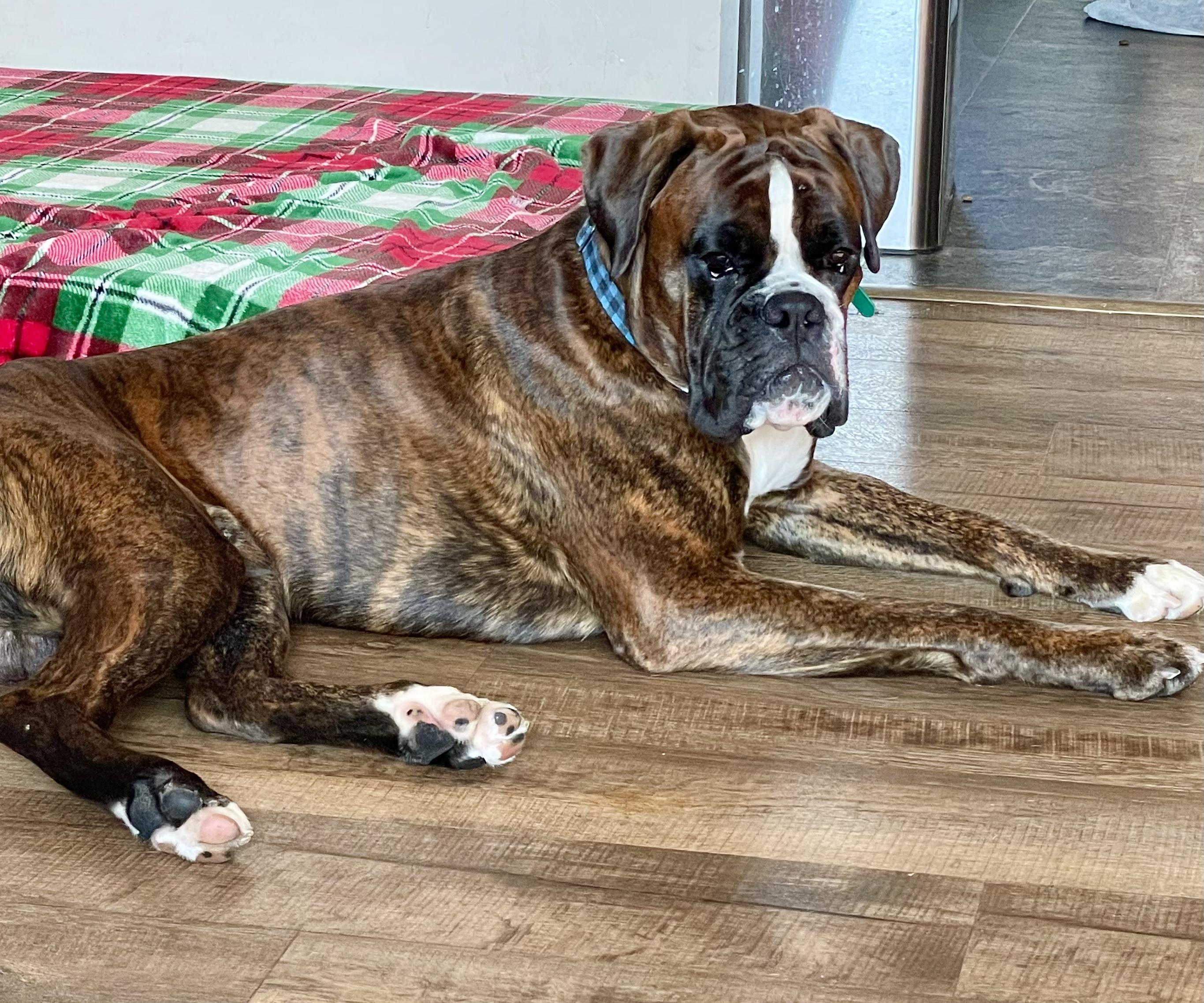 Ascher is a male Boxer. Carefully selected as a great representative of his breed, Lorri decided to make him part of their program. Lorri has passed Good Dog’s screening process, which involved a review of their breeding practices, environment, and the mental and physical health of their dogs.