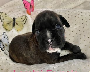 Our puppies include fawn and brindle. Colors will vary depending on the parent dogs.