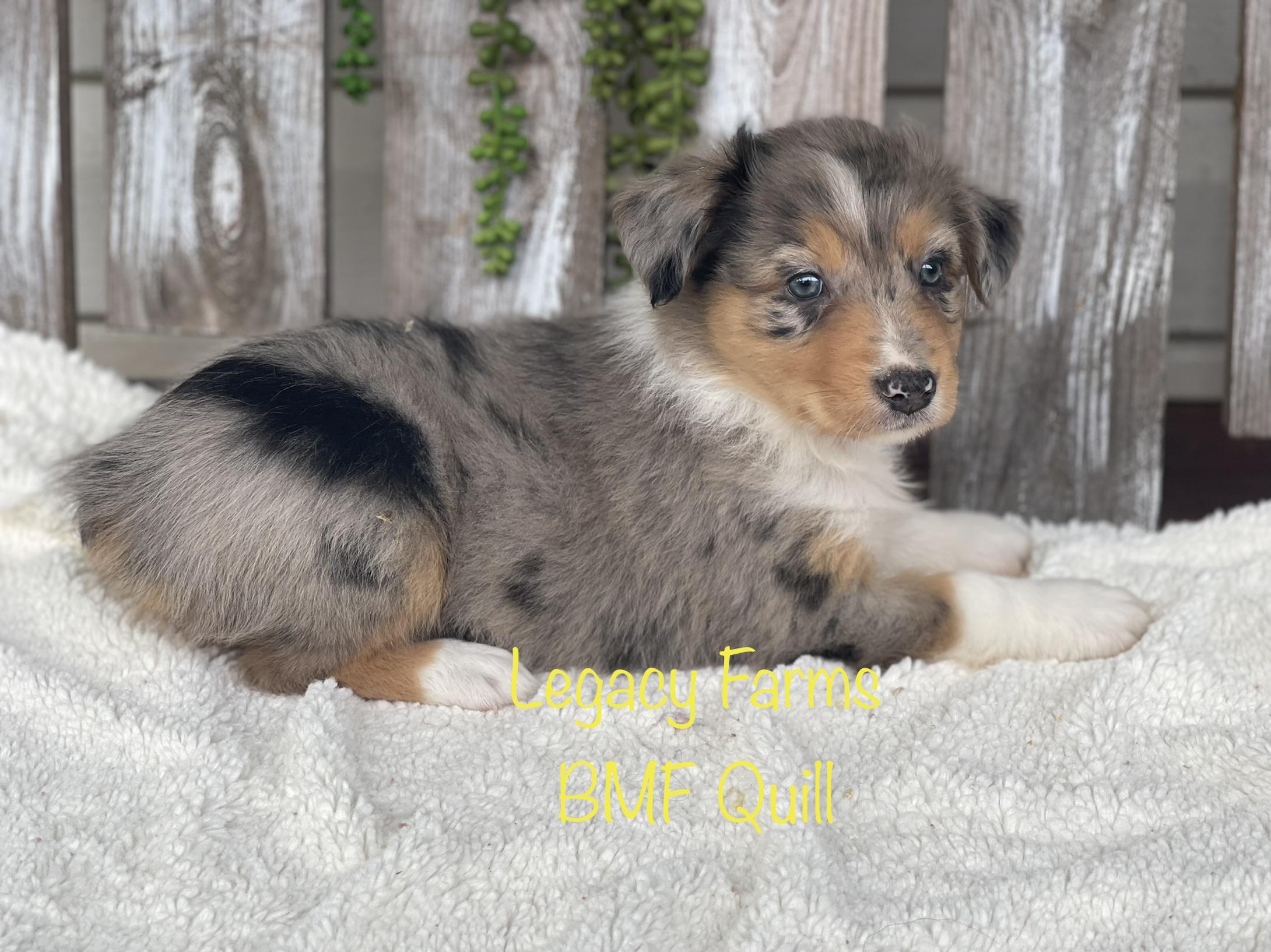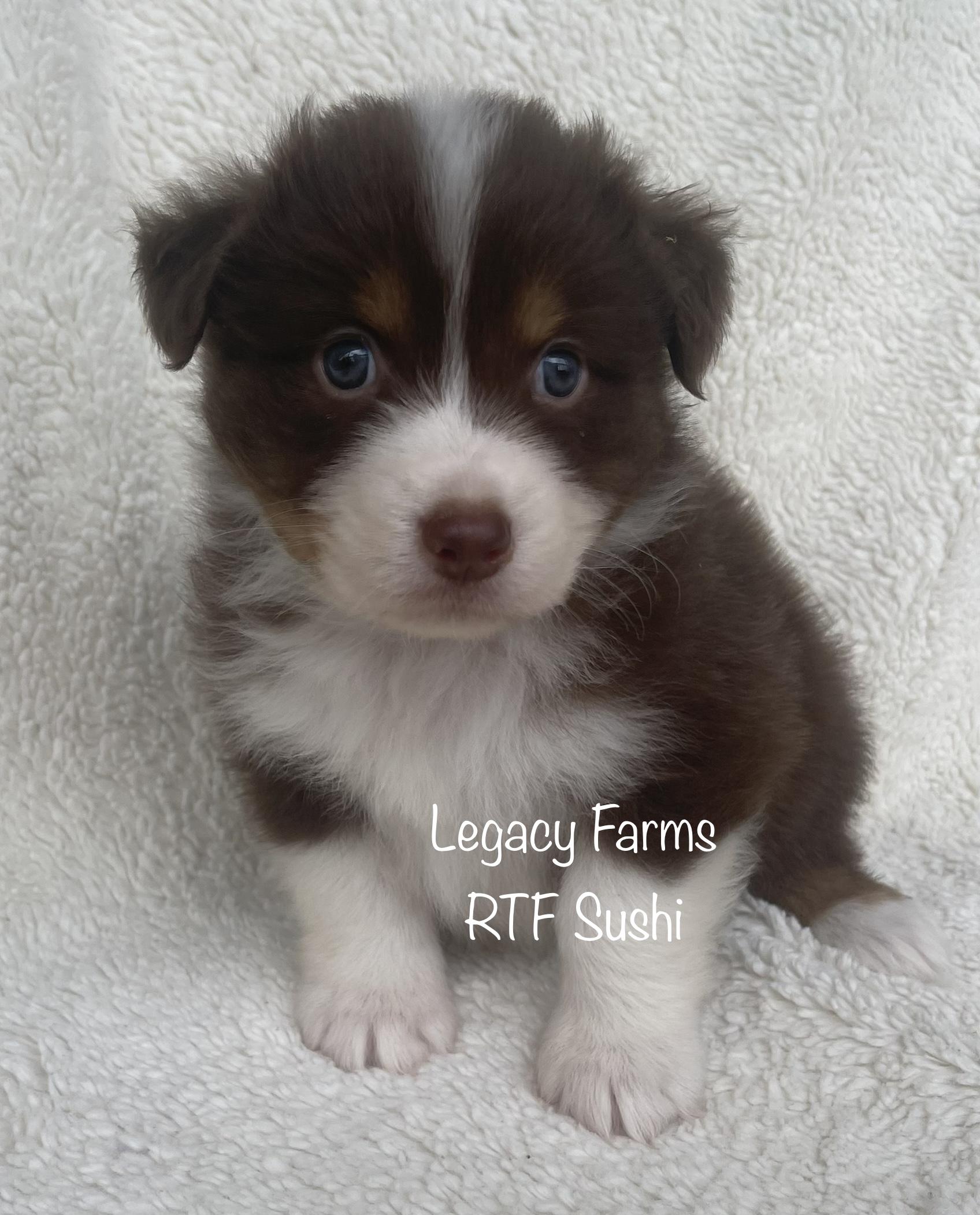 Our puppies include black, red merle, blue merle, and red. Colors will vary depending on the parent dogs.