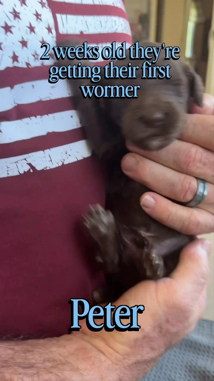 The Easter Litter from Azena & Major are 2 weeks old today. They're starting to open their eyes and they're getting their first round of wormer!